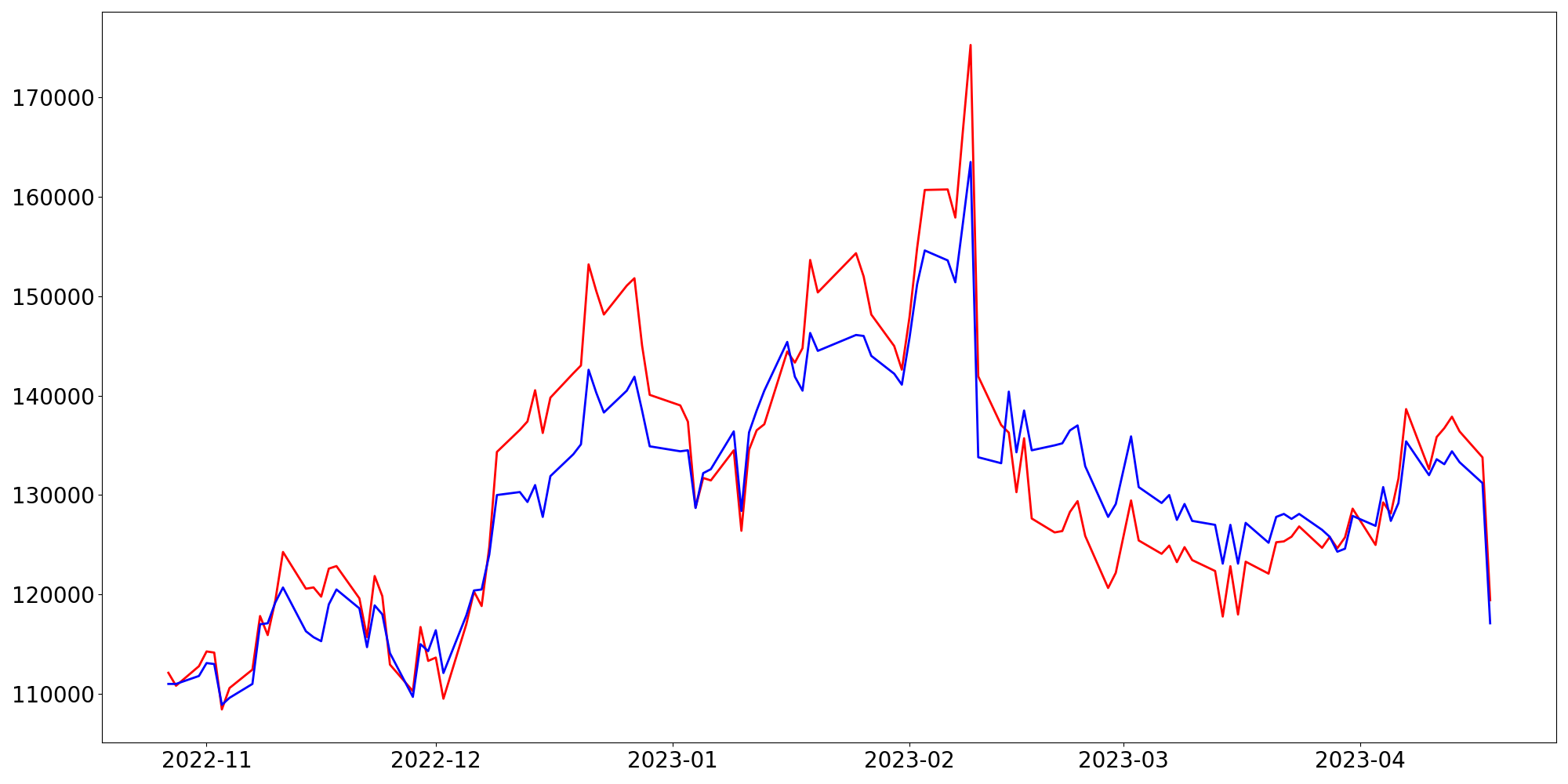 [ - : 실제값(종가) / - : 예측값(종가) ]