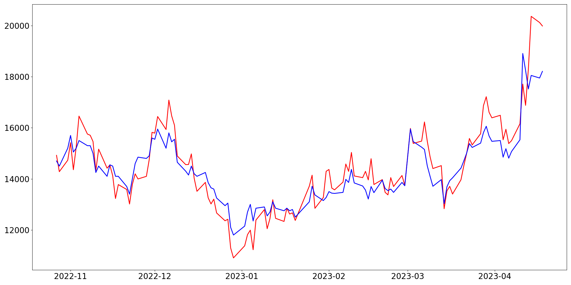 [ - : 실제값(종가) / - : 예측값(종가) ]