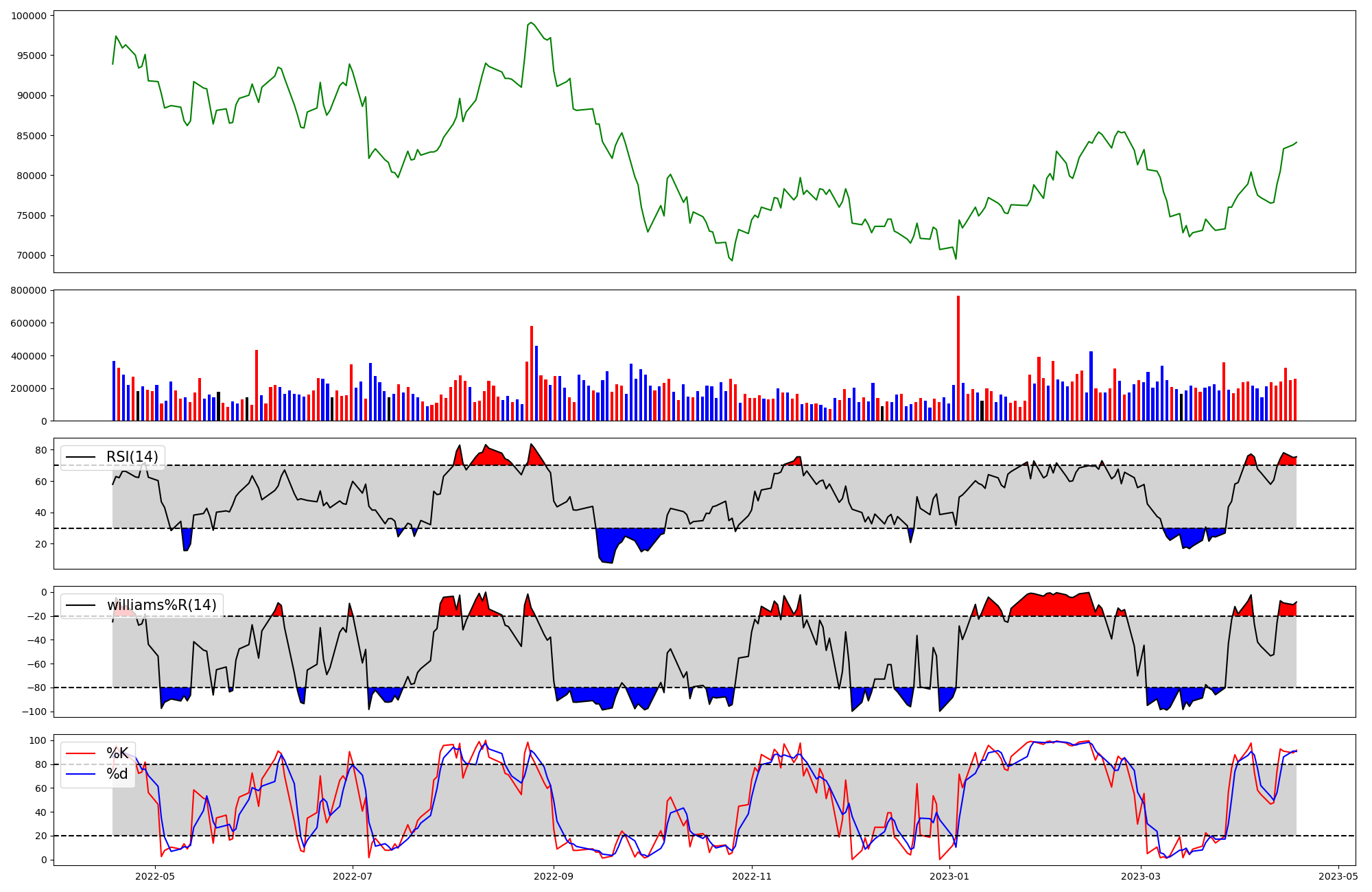 RSI | Williams %R | stochastic(%K) | |