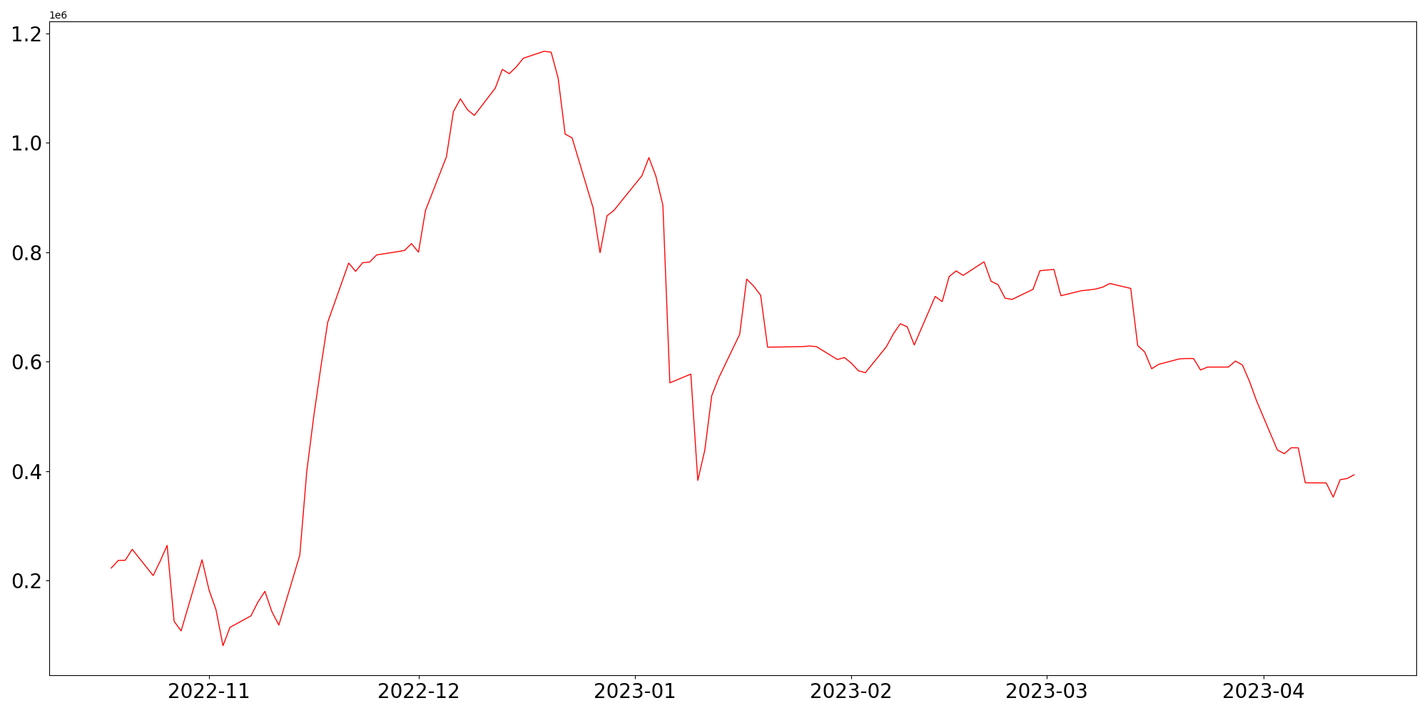 | 20일 | 257,230 | 1,224,338 | -1,434,113 |