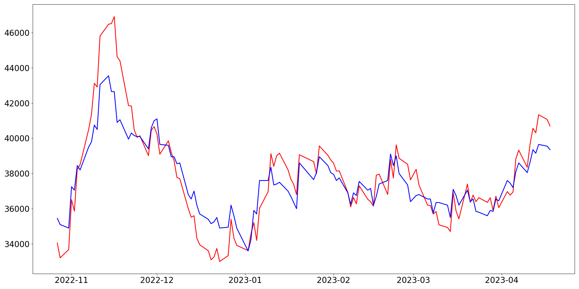 [ - : 실제값(종가) / - : 예측값(종가) ]