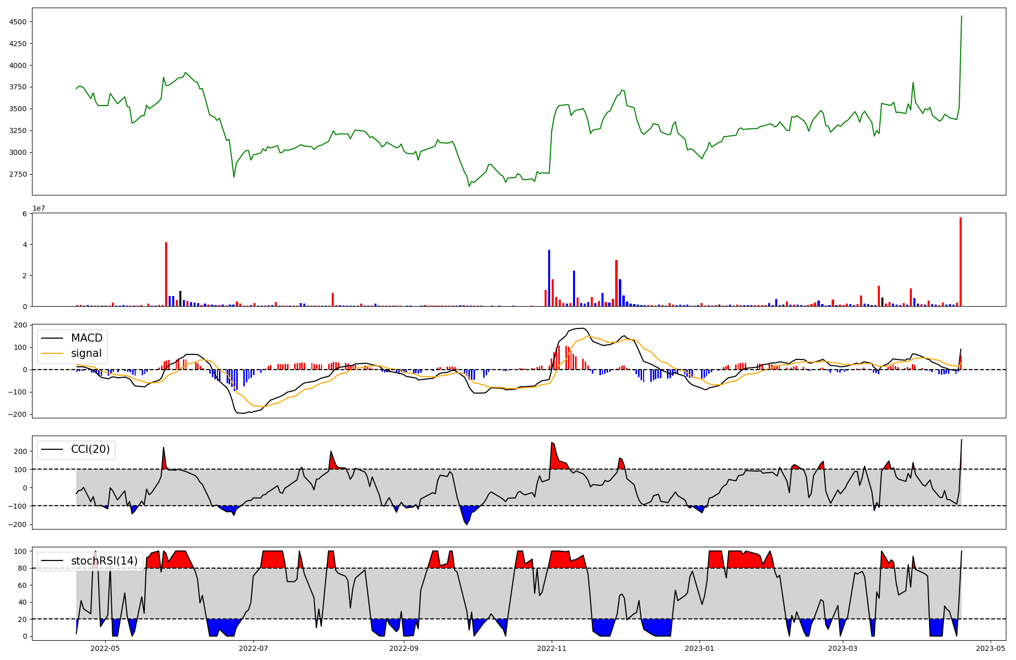 □ 오늘의 종가 : 4,560 (+1,050, +29.91%)