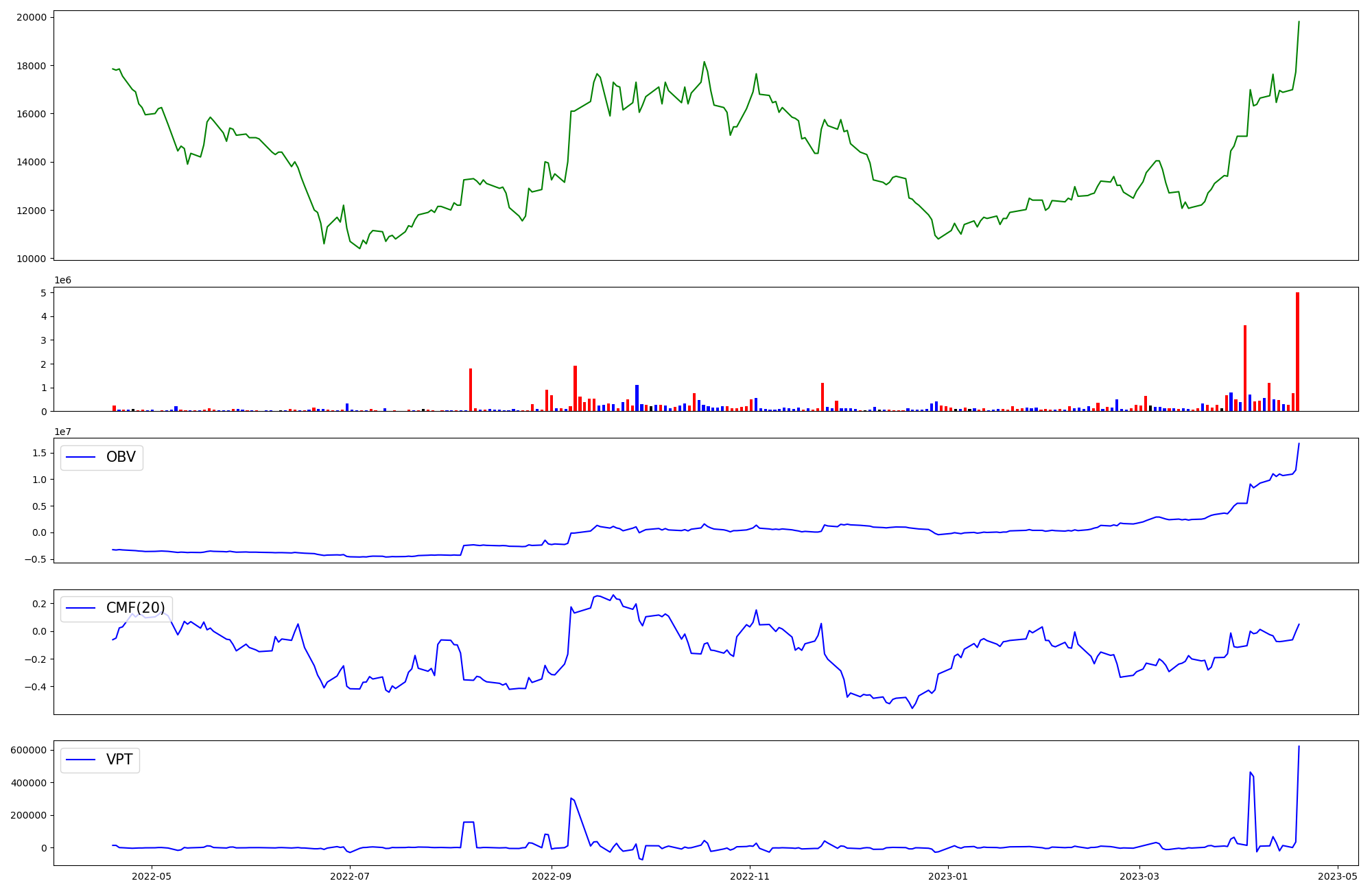 | OBV | CMF | VPT | |