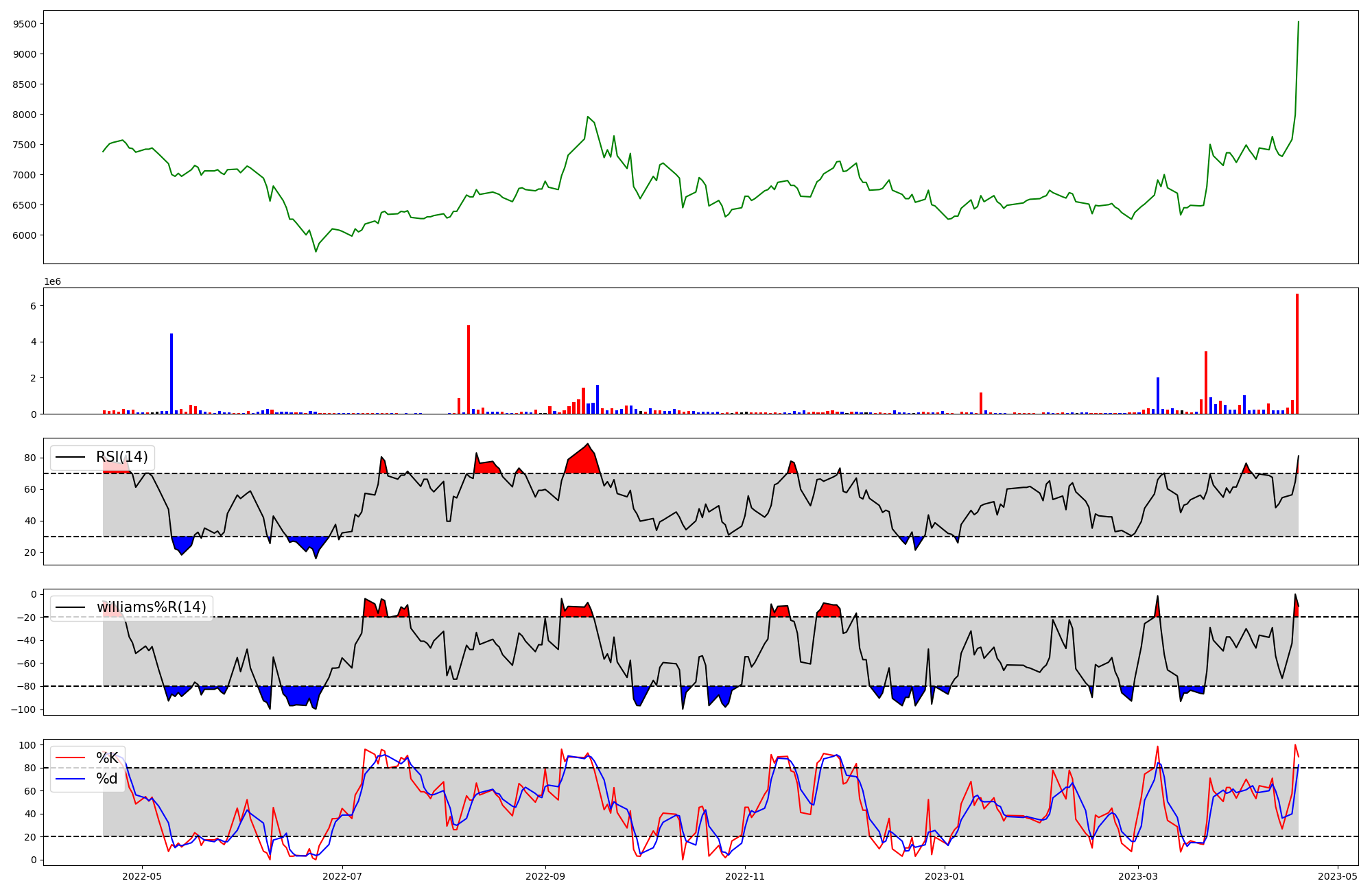 RSI Williams %R stochastic(%K)