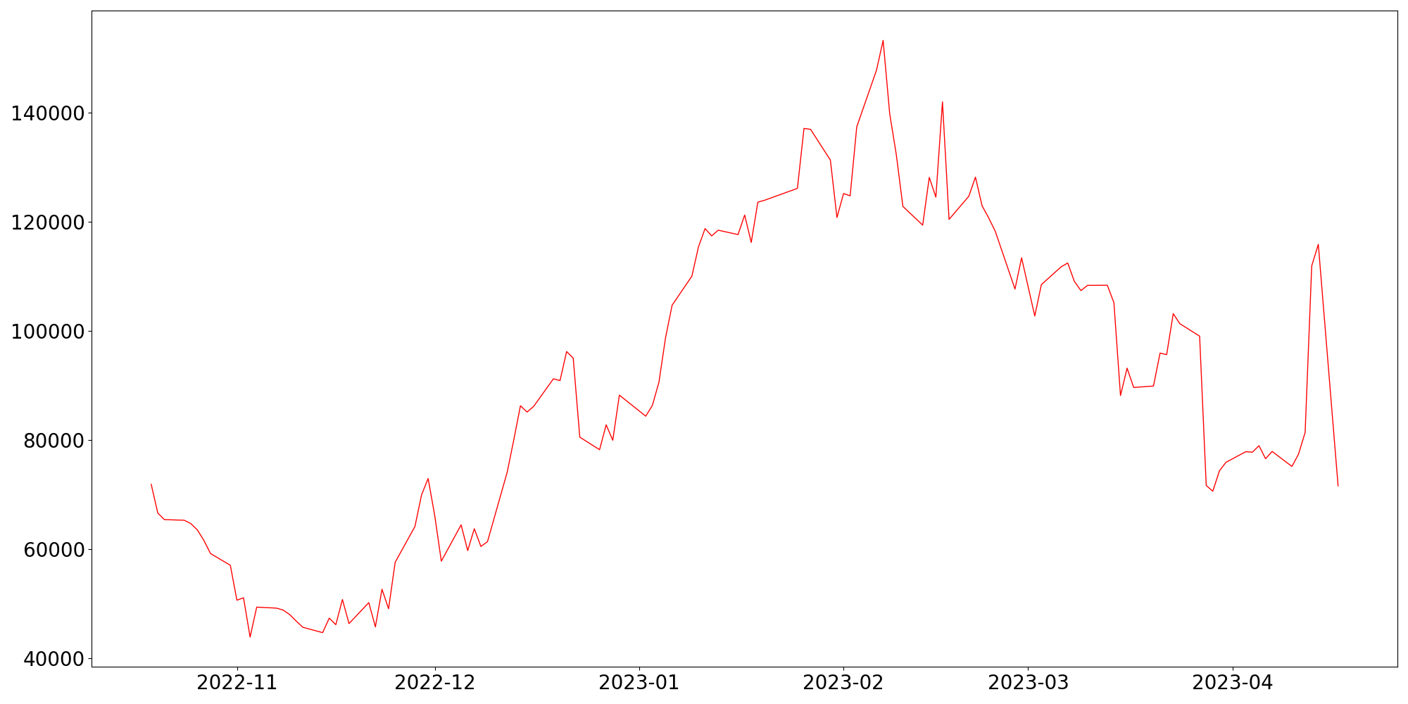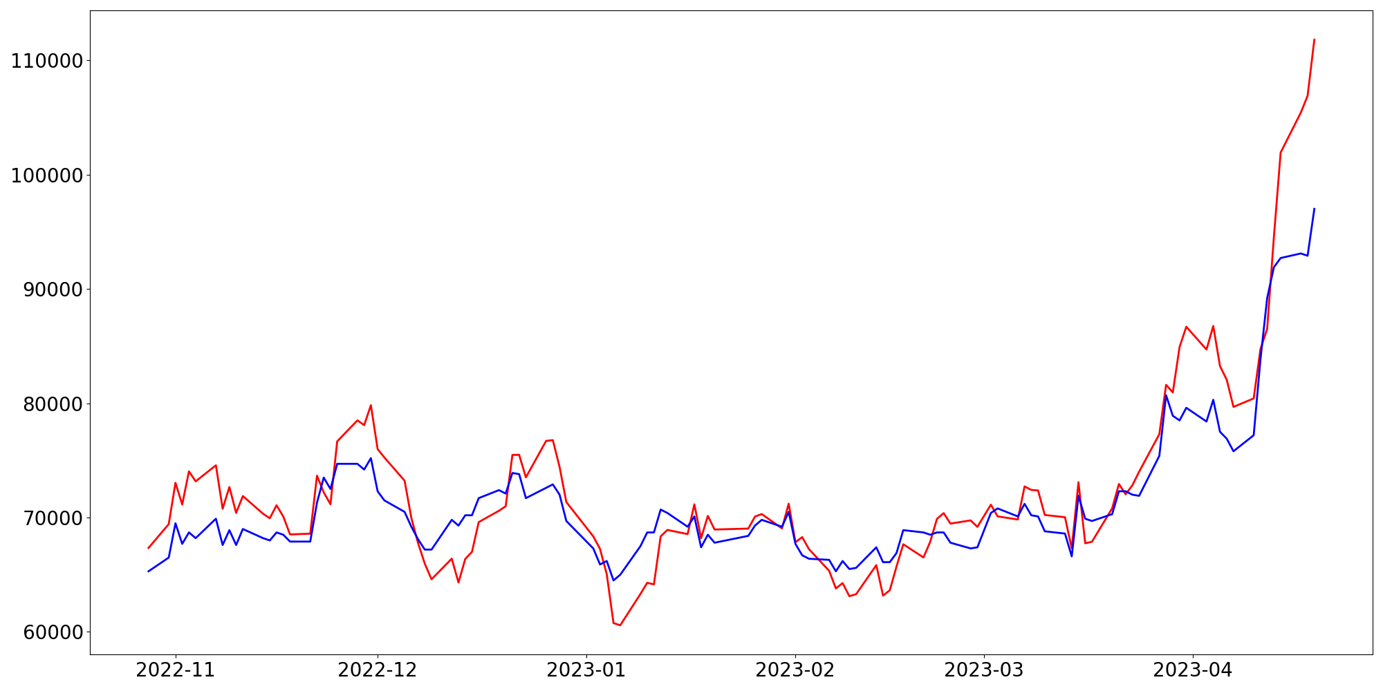 [ - : 실제값(종가) / - : 예측값(종가) ]
