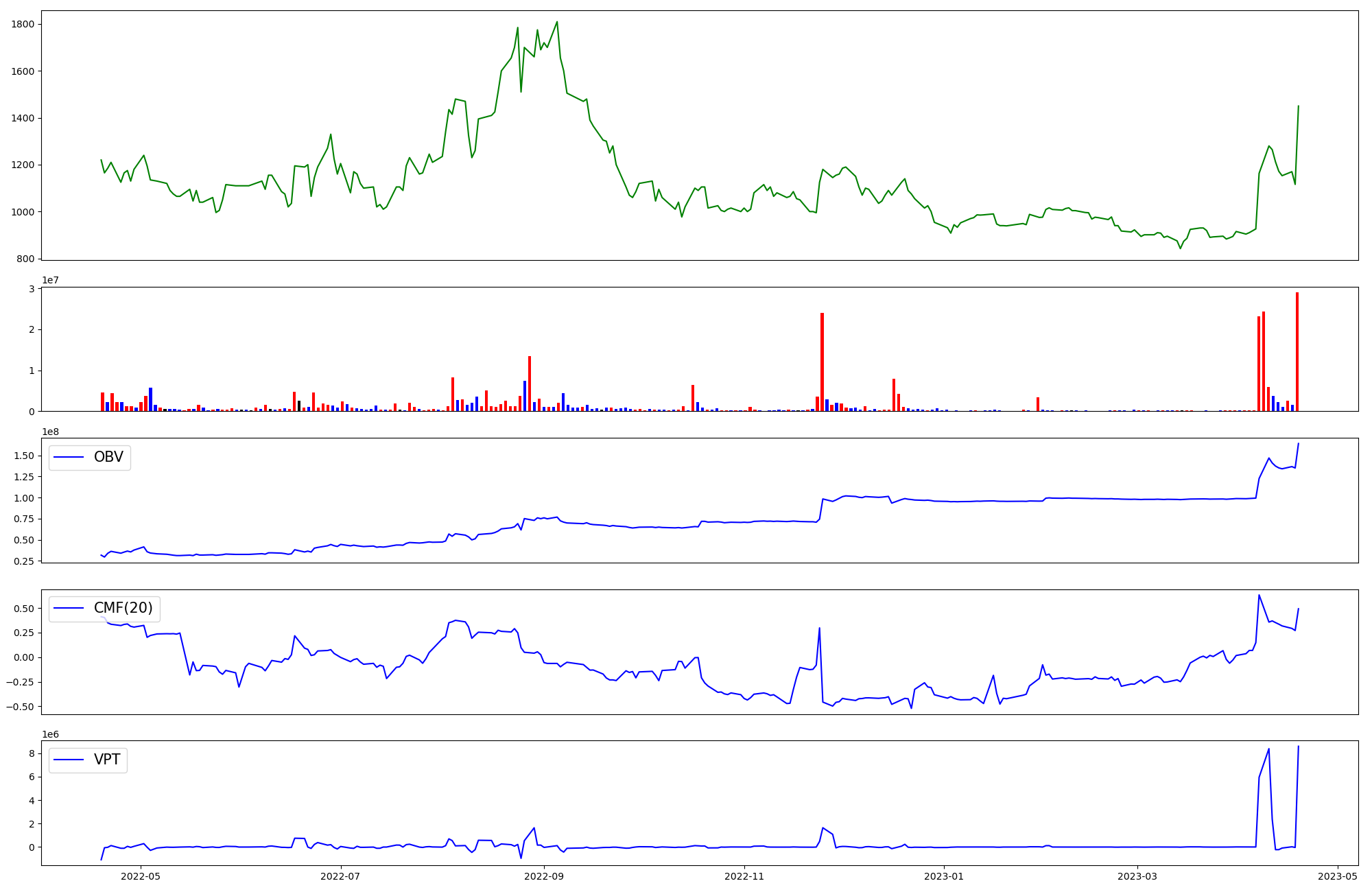 | OBV | CMF | VPT | |