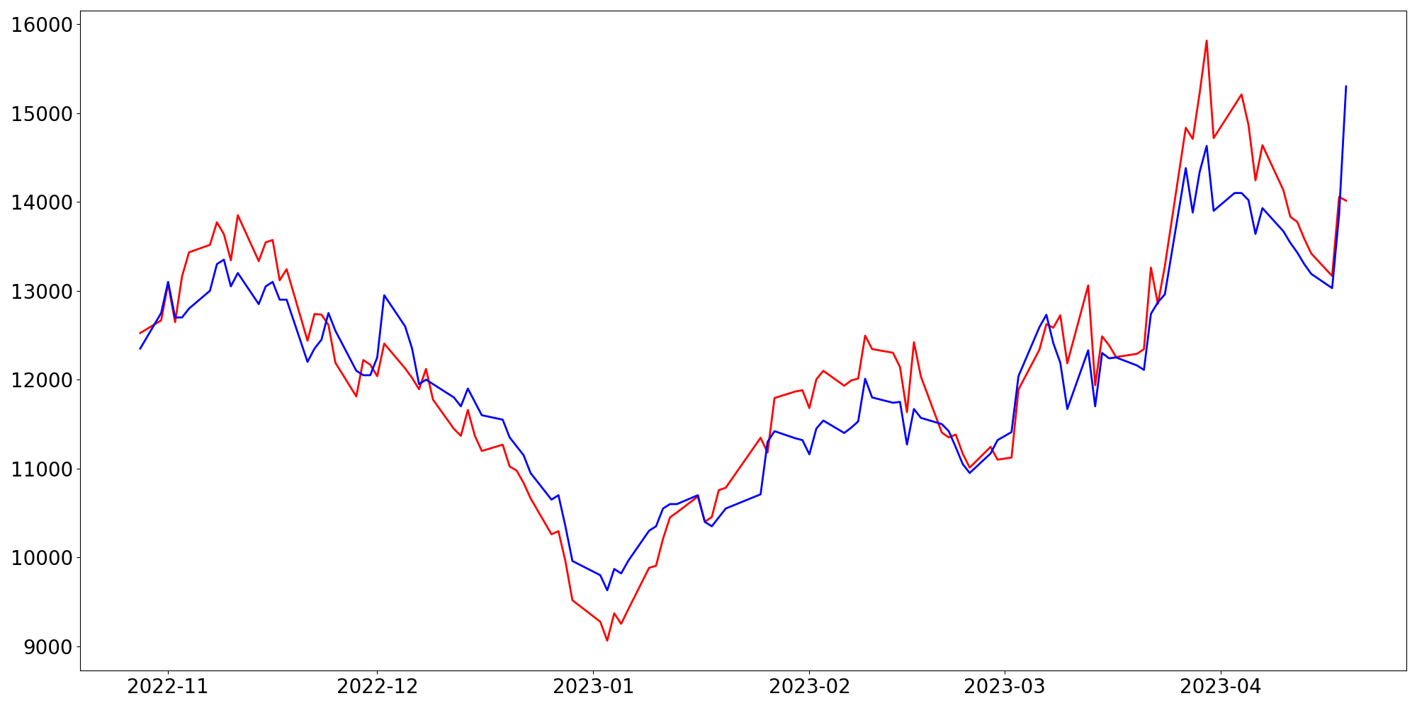 [ - : 실제값(종가) / - : 예측값(종가) ]