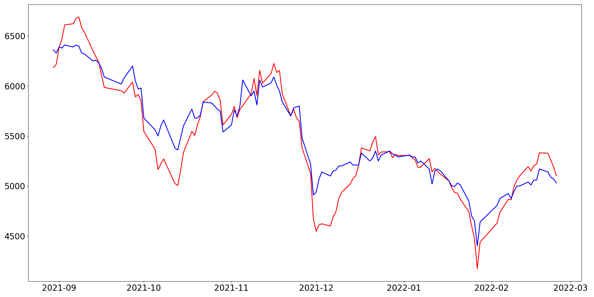 [ - : 실제값(종가) / - : 예측값(종가) ]