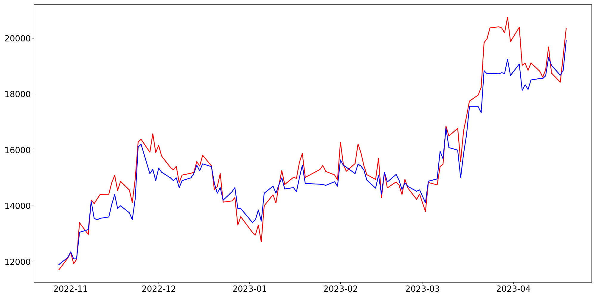 [ - : 실제값(종가) / - : 예측값(종가) ]