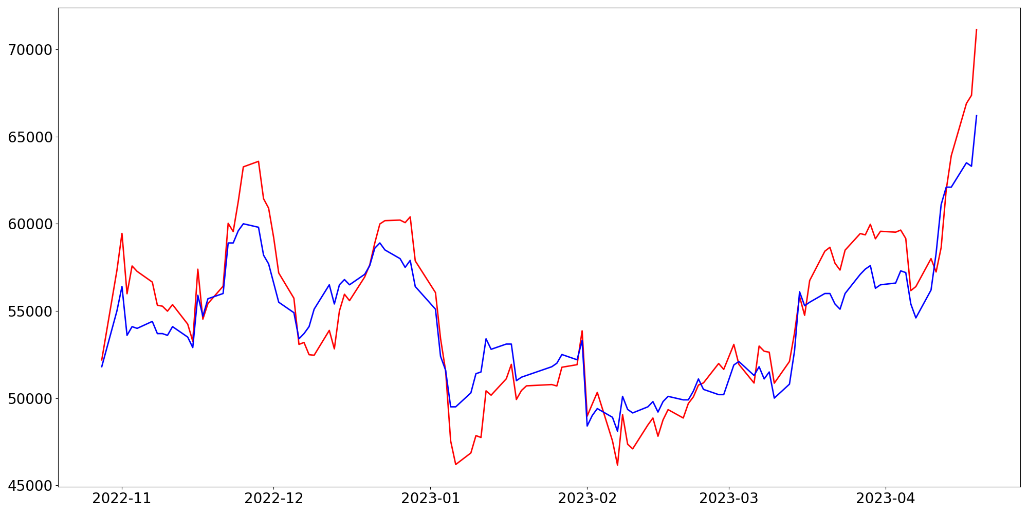 [ - : 실제값(종가) / - : 예측값(종가) ]