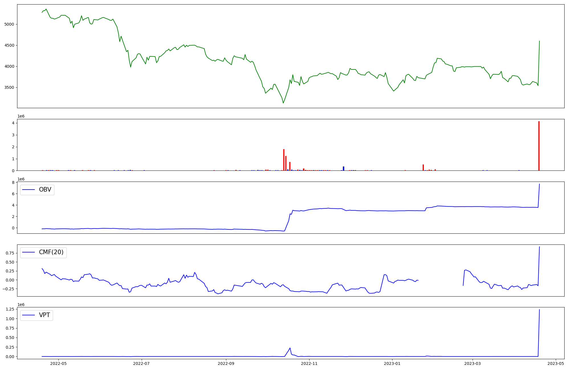 | OBV | CMF | VPT | |