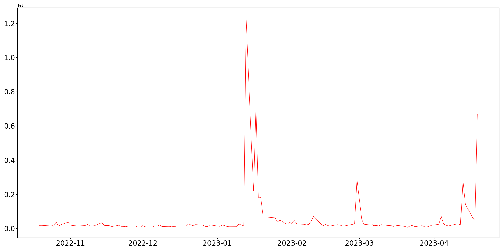 일별 공매도 거래량 추이를 그래프로 나타낸 것으로 공매도 거래량이 증가할 수록 단기적으로 가격 하락을 예측하는 시장참가자가 증거하는 것으로 판단해 볼 수 있습니다.