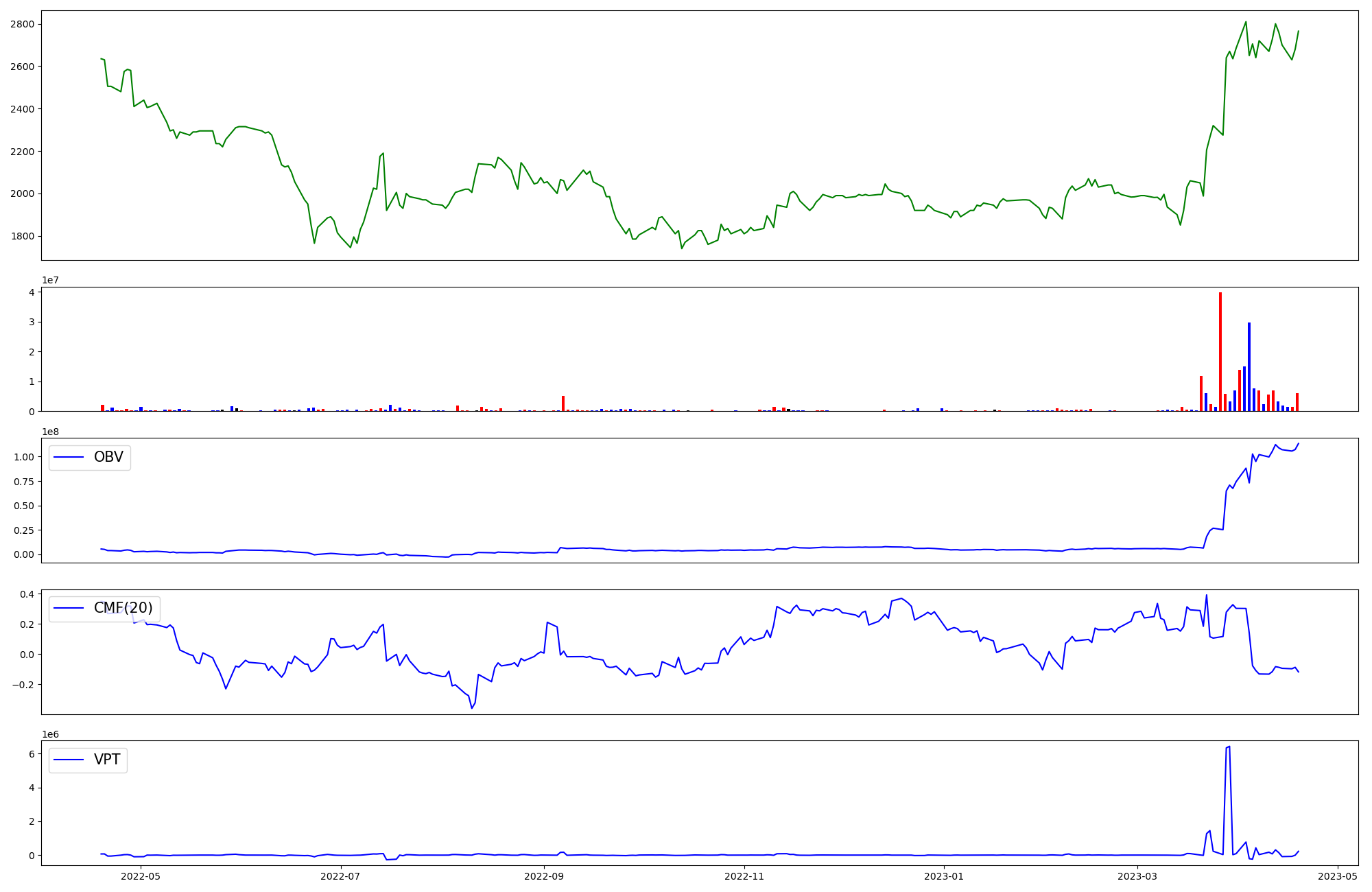 | OBV | CMF | VPT | |
