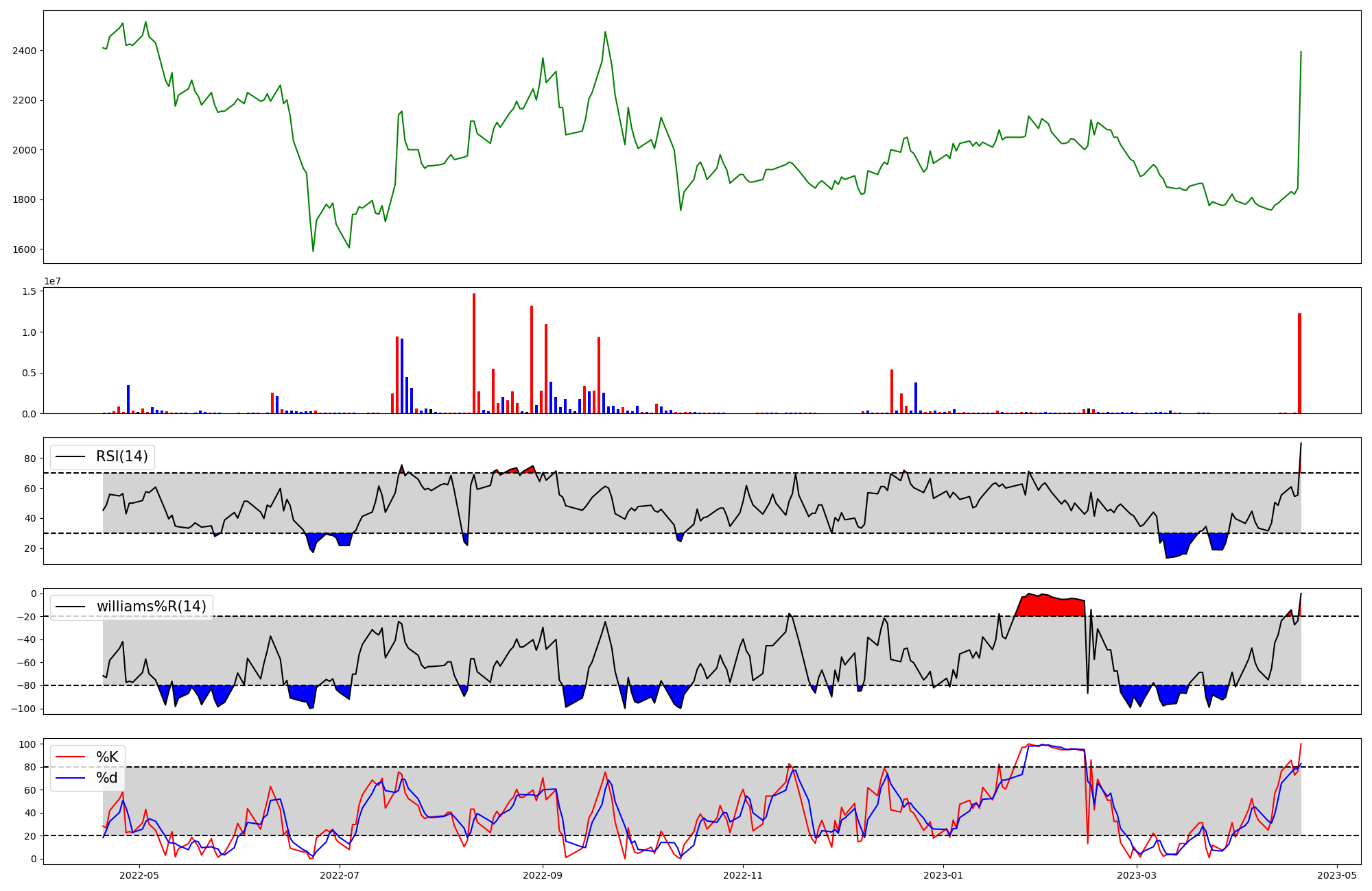 RSI | Williams %R | stochastic(%K) | |