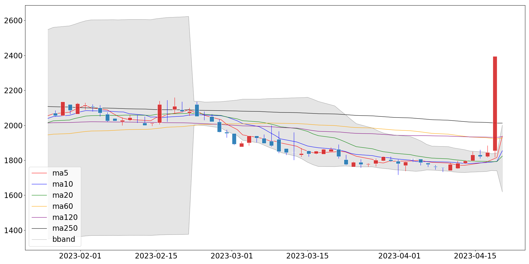 단순이동평균 | 1,937.80 | 1,854.20 | 1,823.45 |