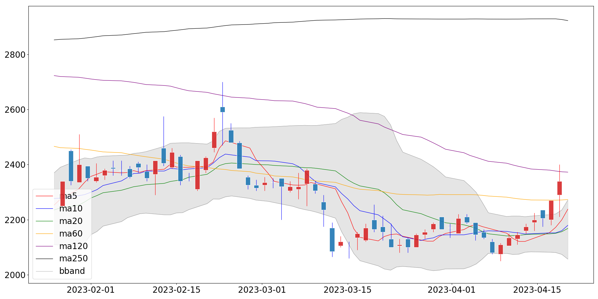 단순이동평균 | 2,238.00 | 2,179.50 | 2,168.25 |