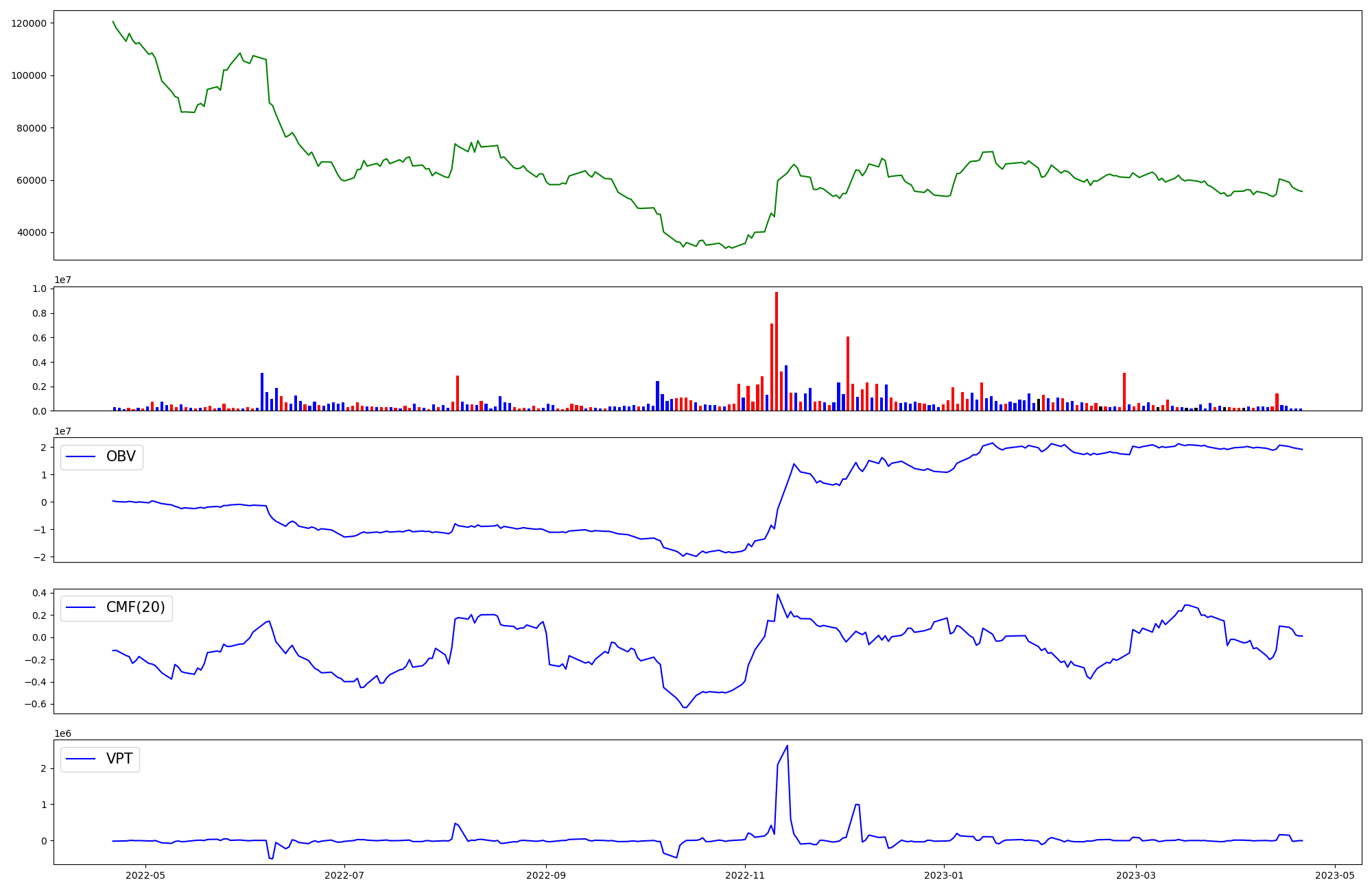 | OBV | CMF | VPT | |