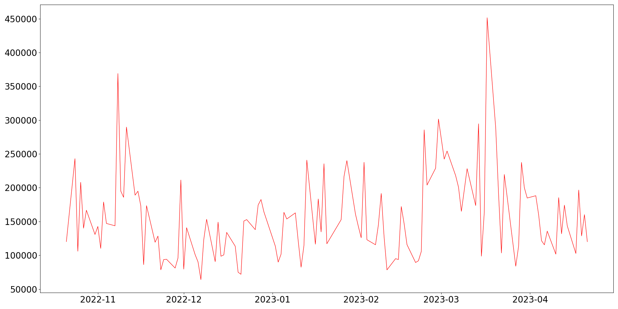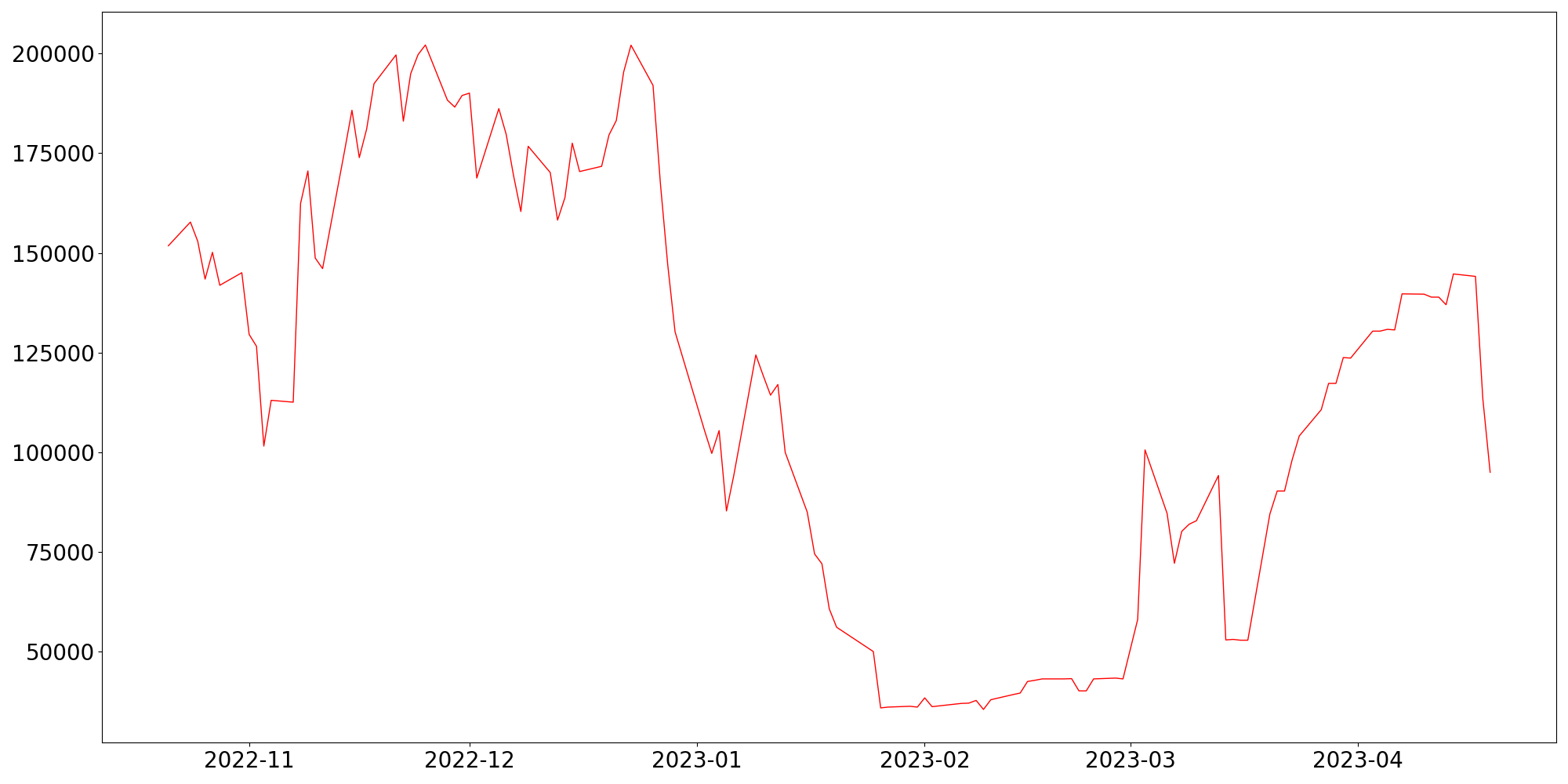 일별 공매도 거래량 추이를 그래프로 나타낸 것으로 공매도 거래량이 증가할 수록 단기적으로 가격 하락을 예측하는 시장참가자가 증거하는 것으로 판단해 볼 수 있습니다.