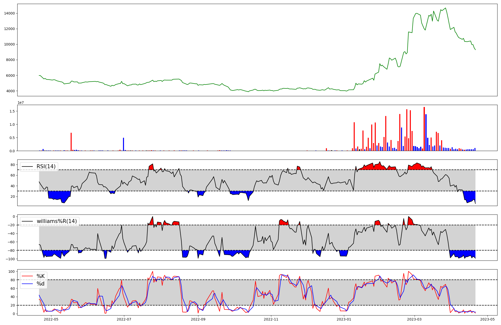 | RSI | Williams %R | stochastic(%K) | |