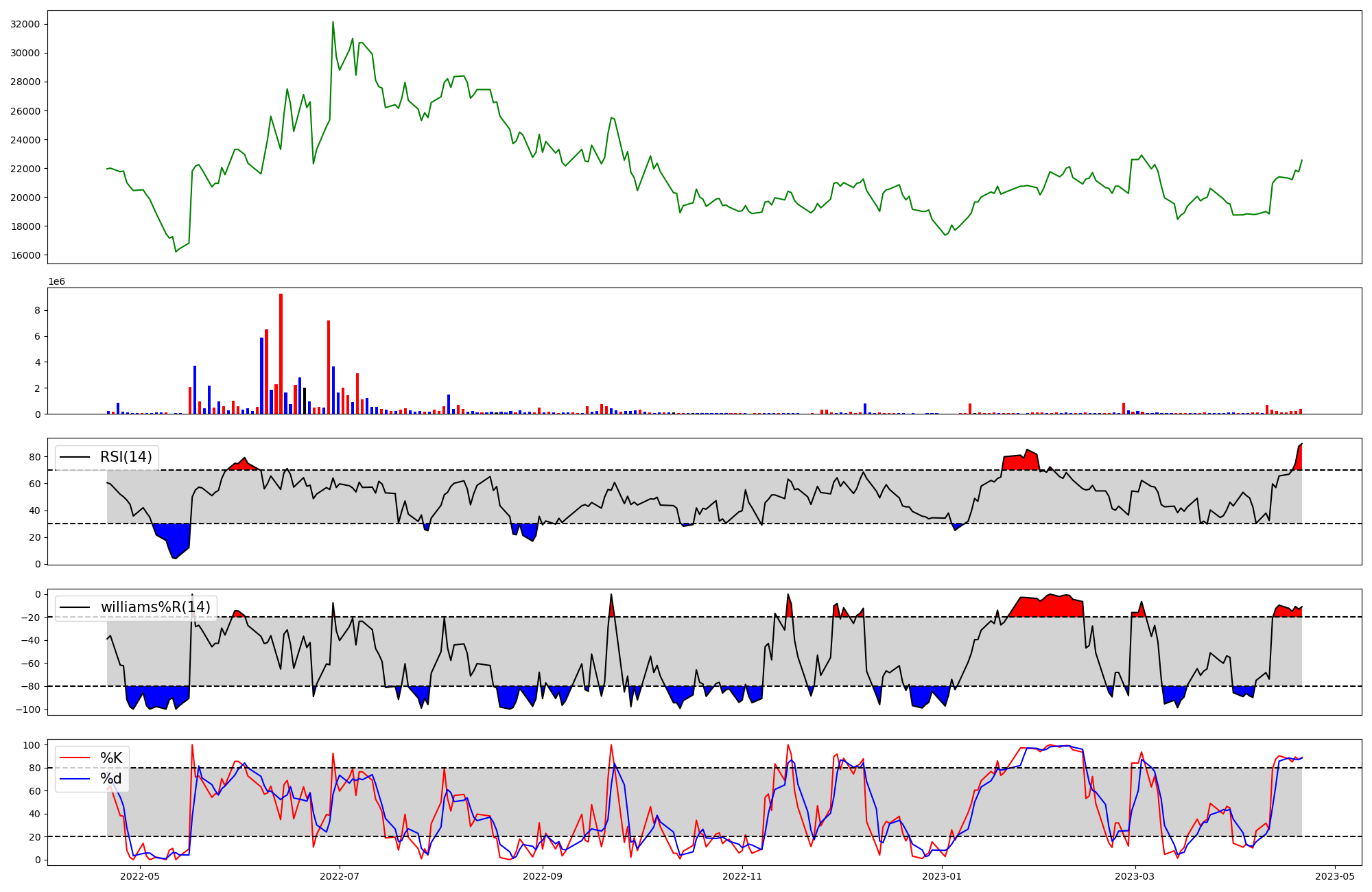 | RSI | Williams %R | stochastic(%K) | |