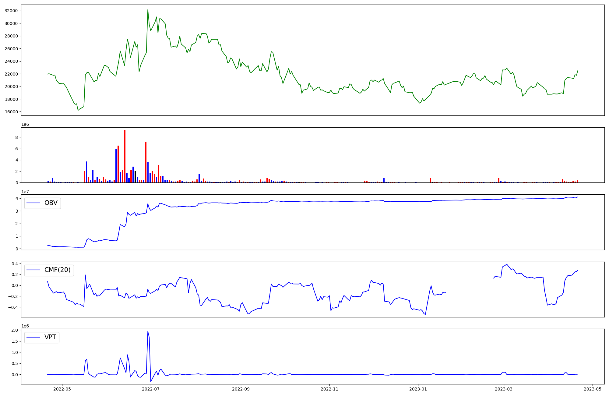 | OBV | CMF | VPT | |