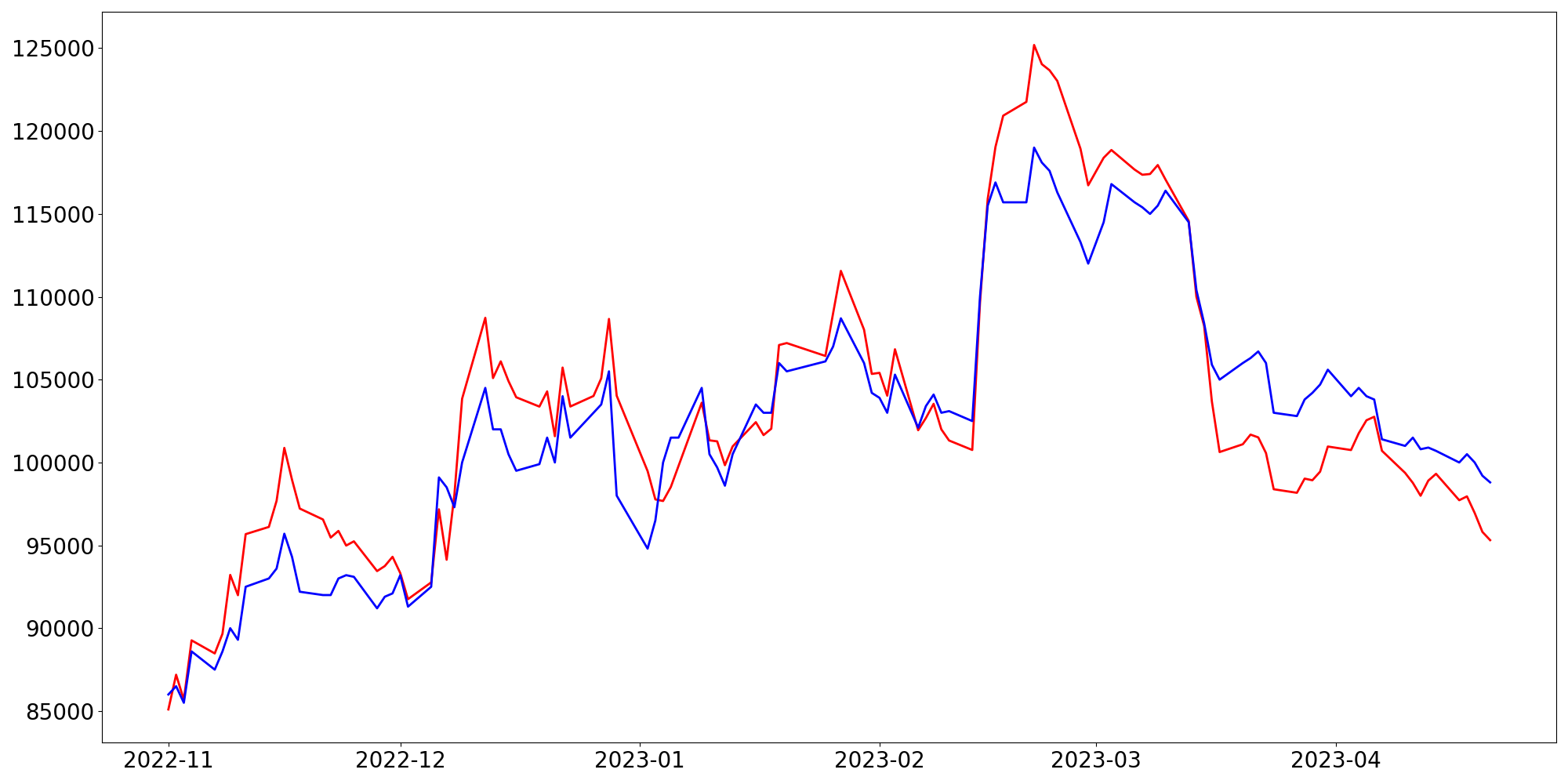[ - : 실제값(종가) / - : 예측값(종가) ]