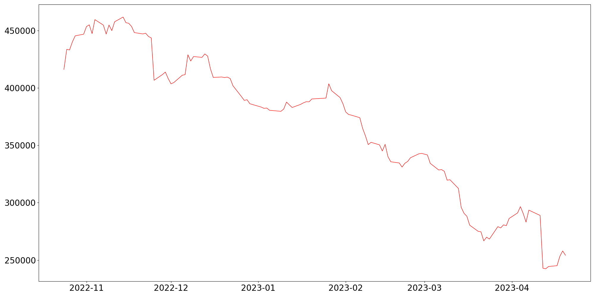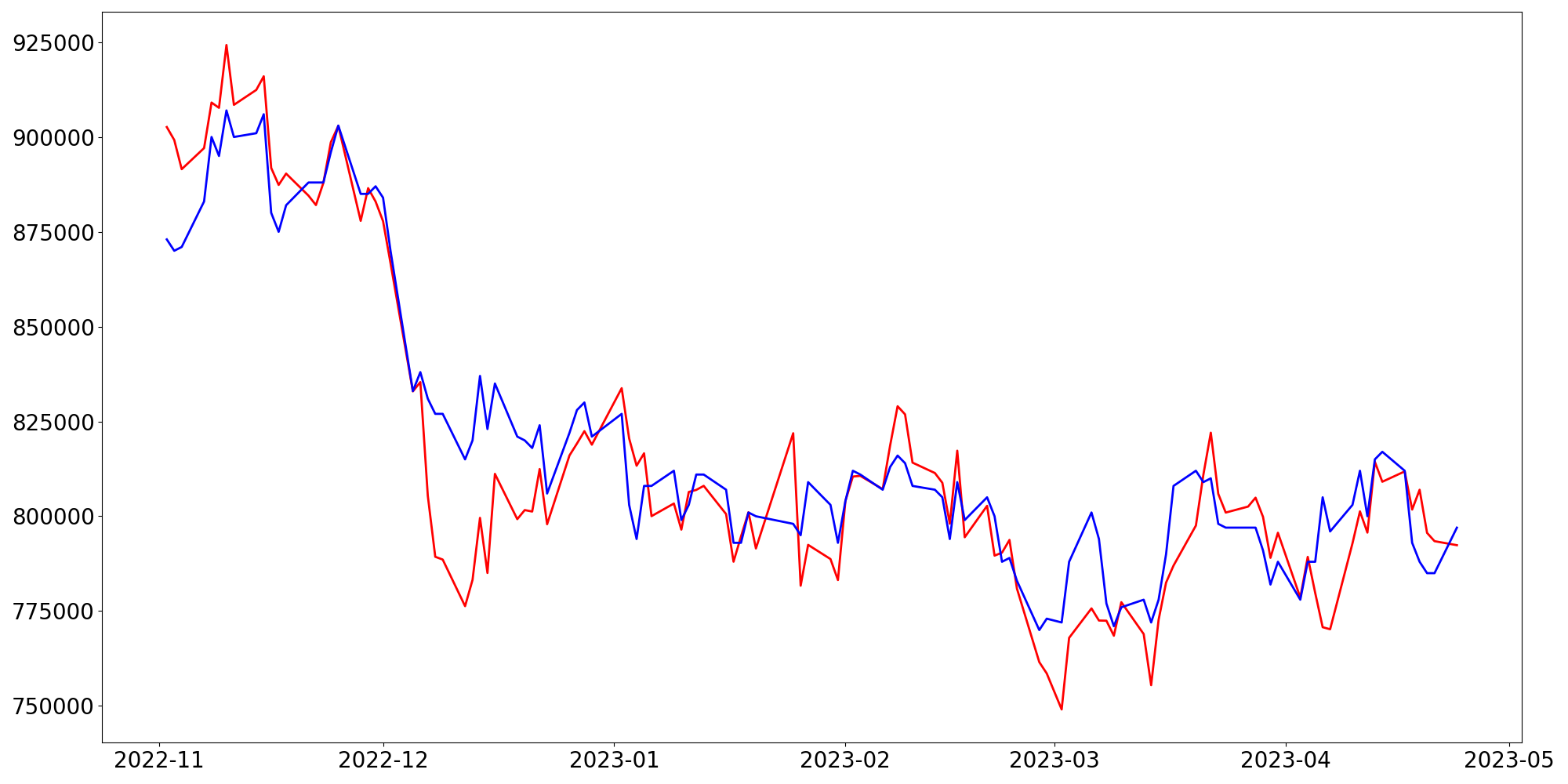 [ - : 실제값(종가) / - : 예측값(종가) ]