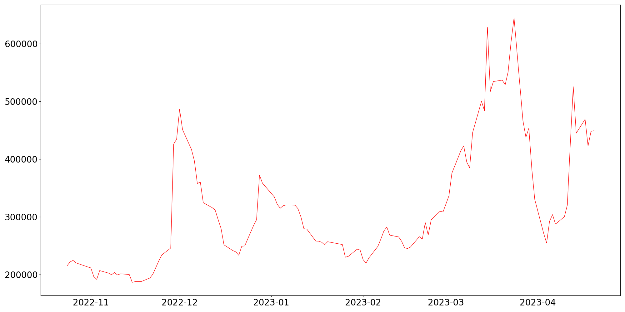 [ - : 실제값(종가) / - : 예측값(종가) ]