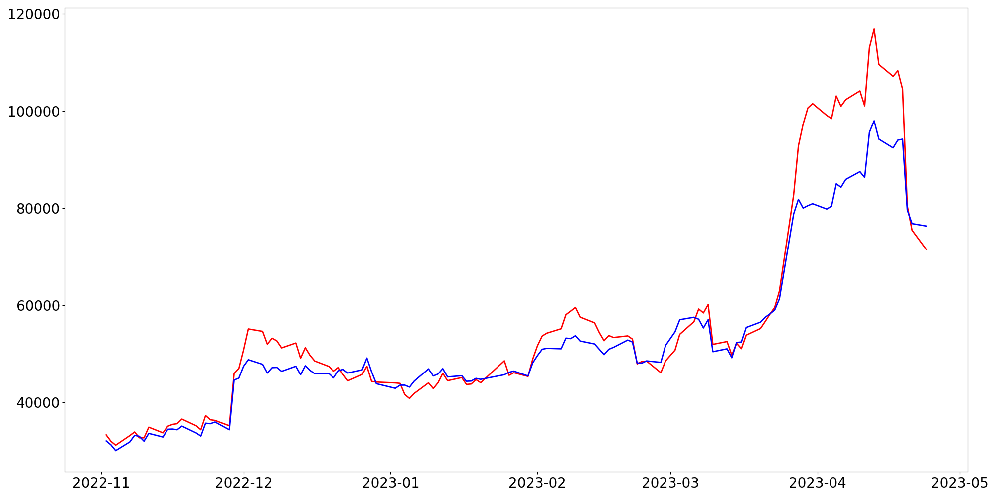 [ - : 실제값(종가) / - : 예측값(종가) ]