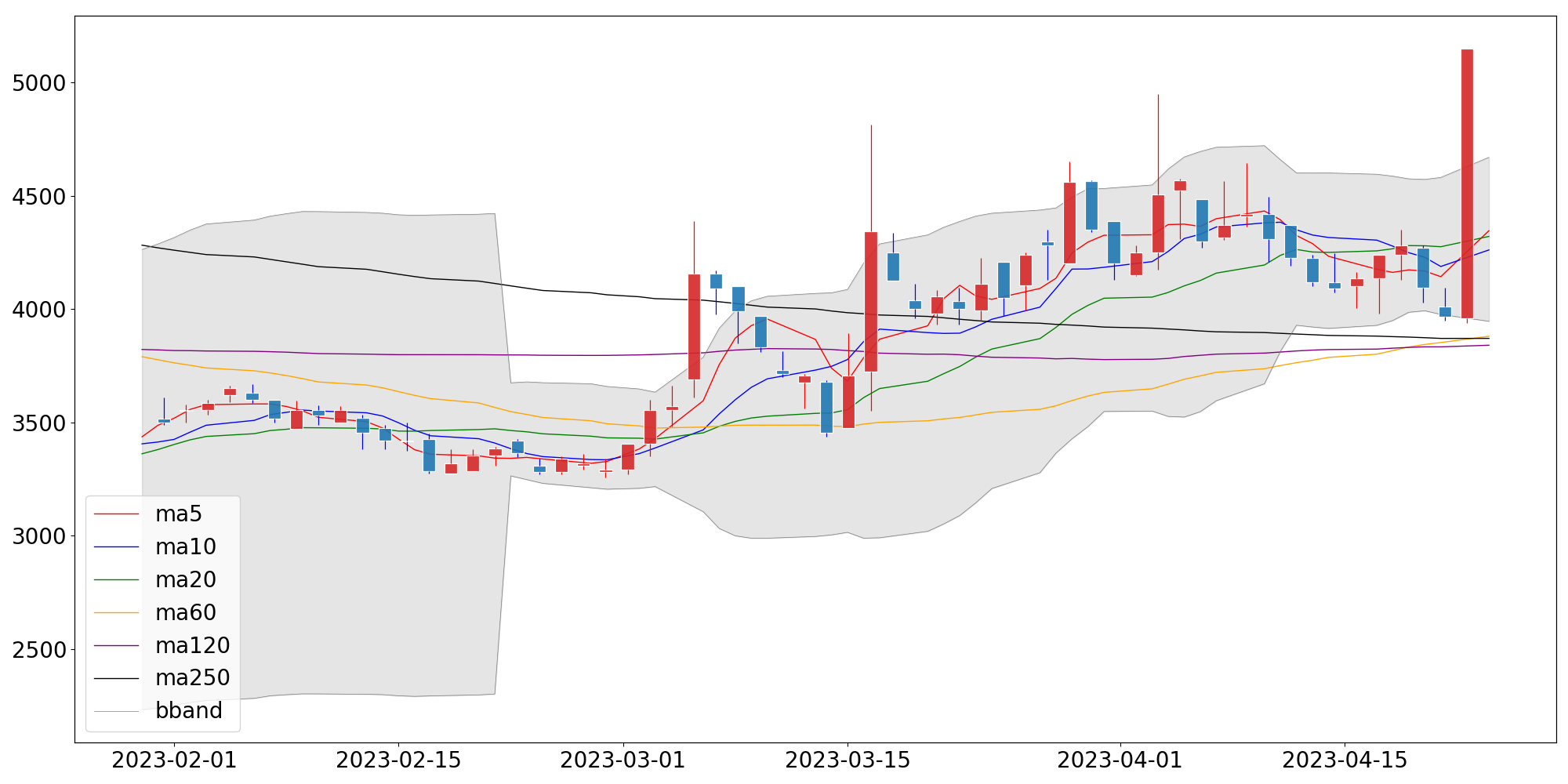 □ 오늘의 종가 : 5,150 (+1,185, +29.89%)