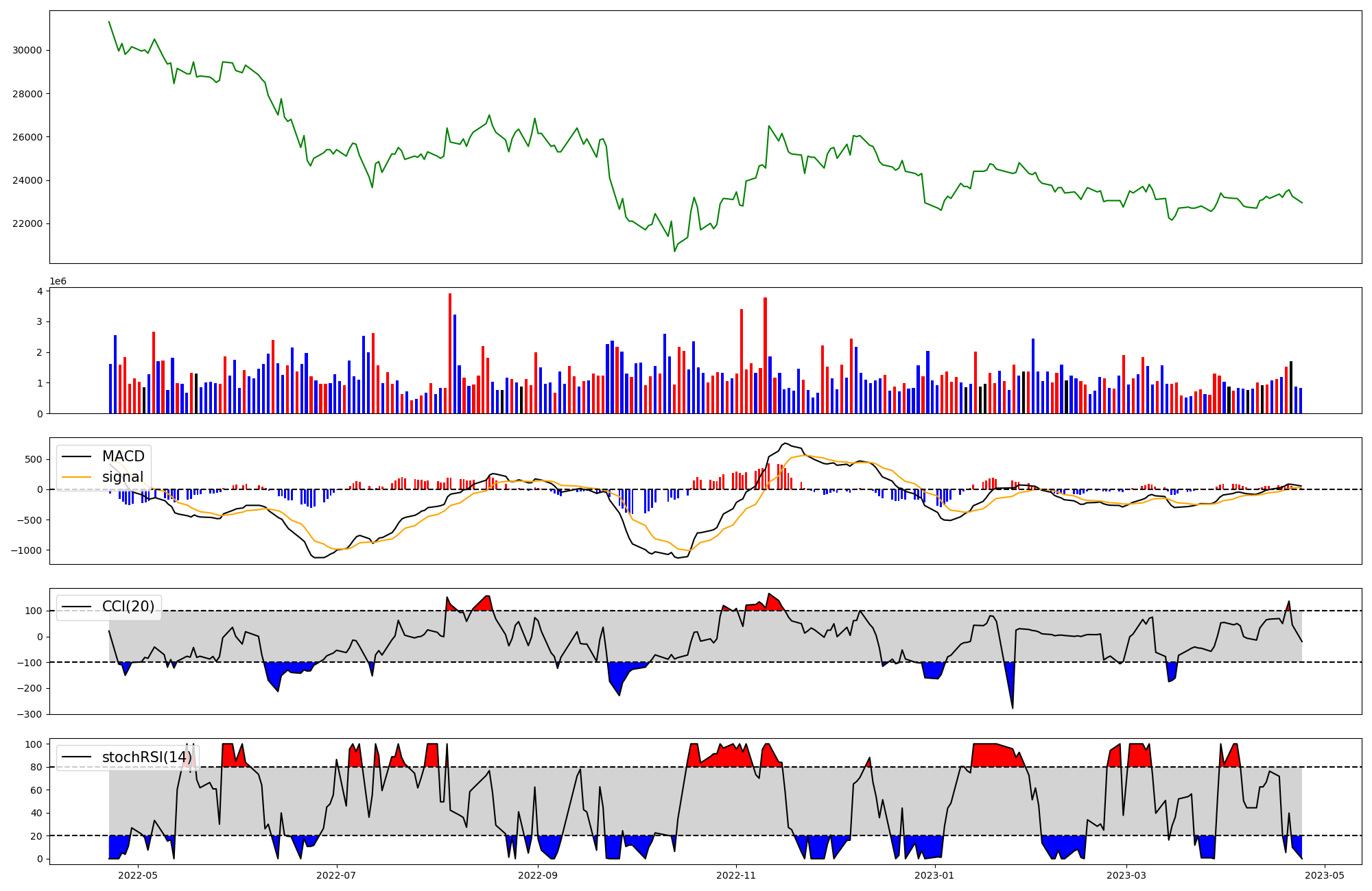 □ 오늘의 종가 : 22,950 (-300, -1.29%)