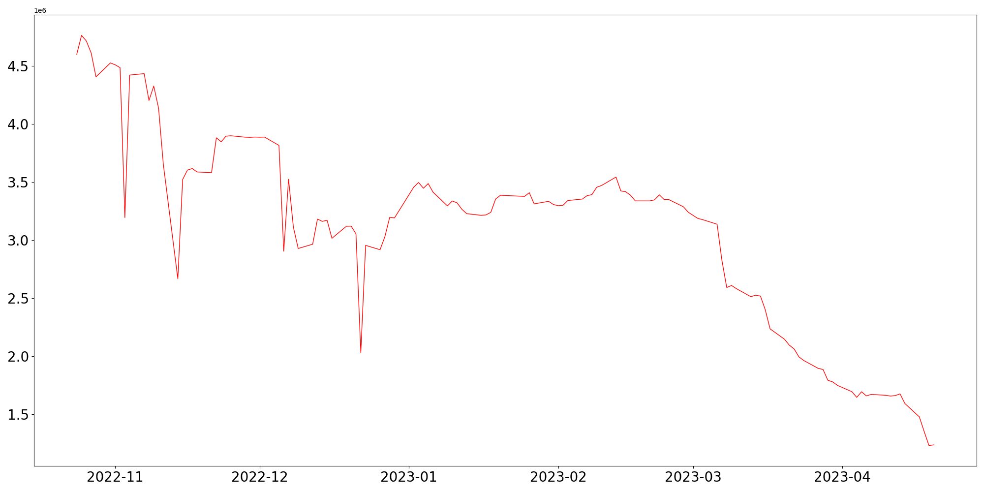 | 20일 | 201,649 | 1,423,333 | -1,581,952 |
