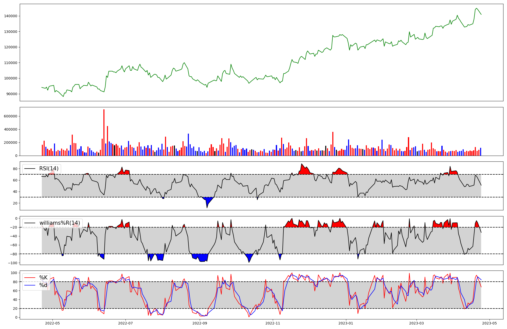 | RSI | Williams %R | stochastic(%K) | |