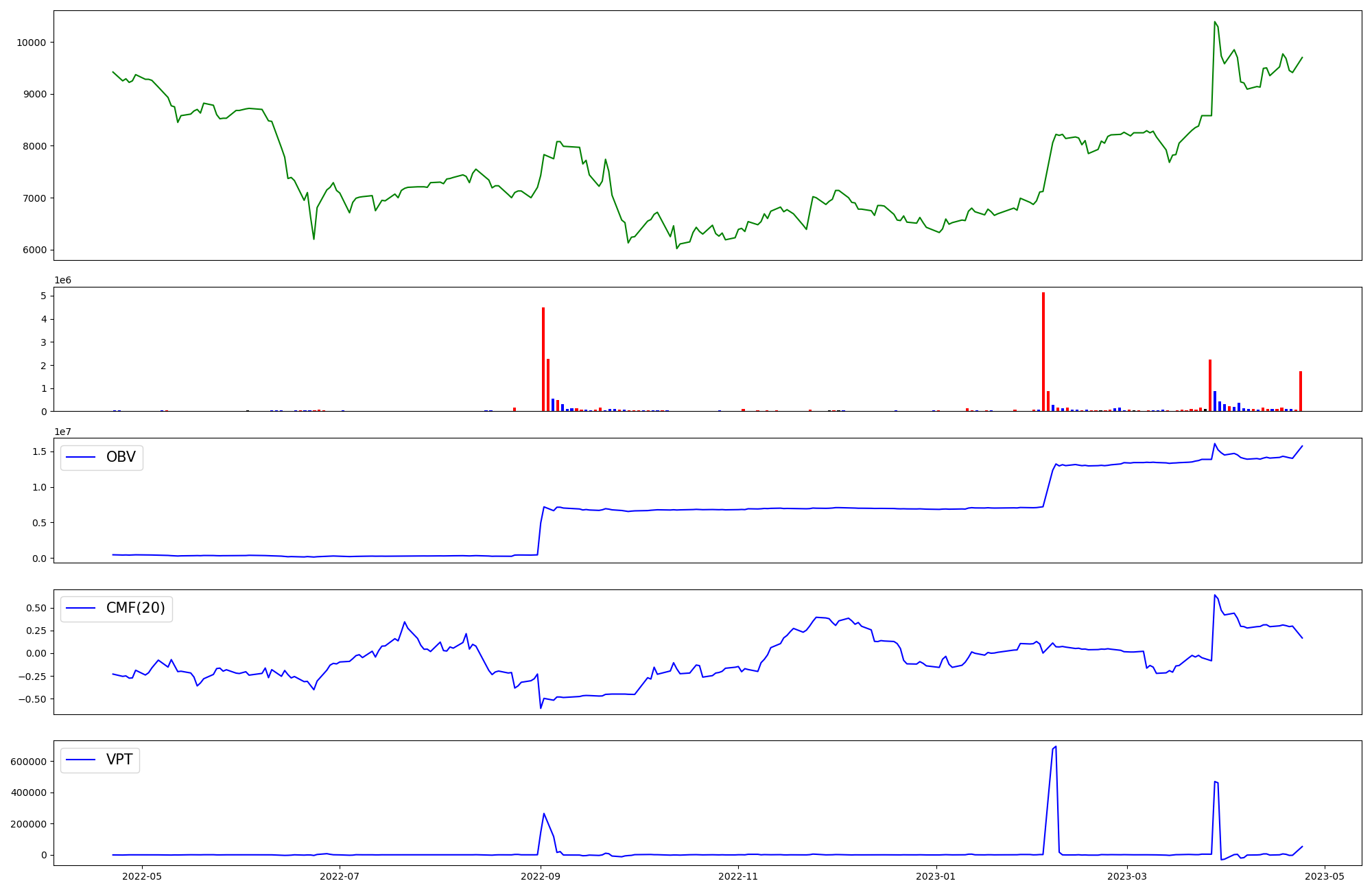 | OBV | CMF | VPT | |