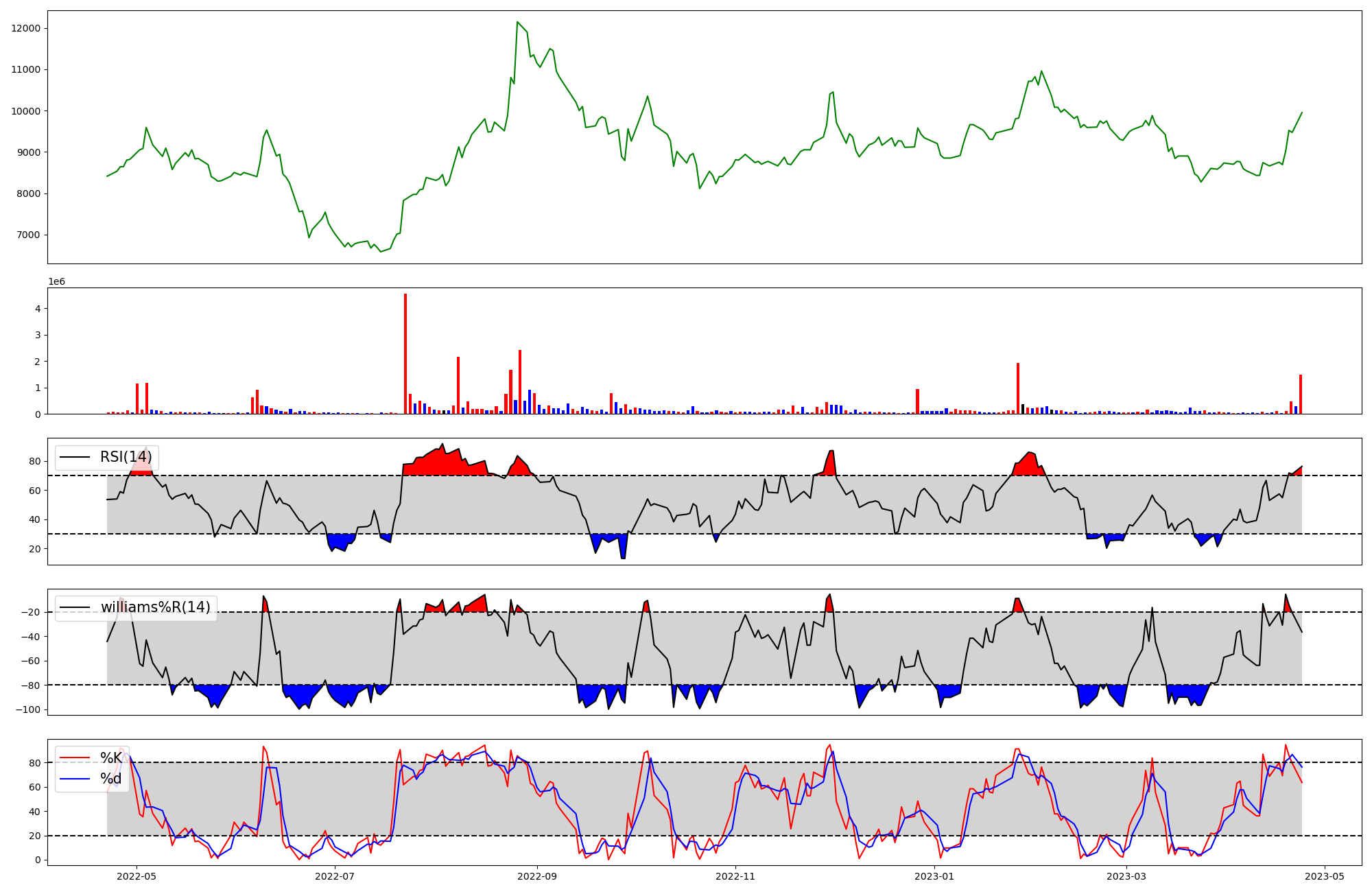 RSI | Williams %R | stochastic(%K) | |