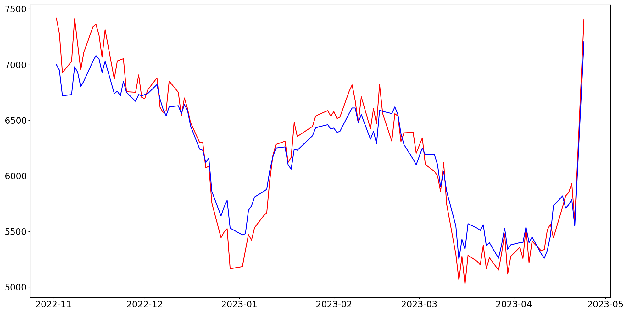 [ - : 실제값(종가) / - : 예측값(종가) ]