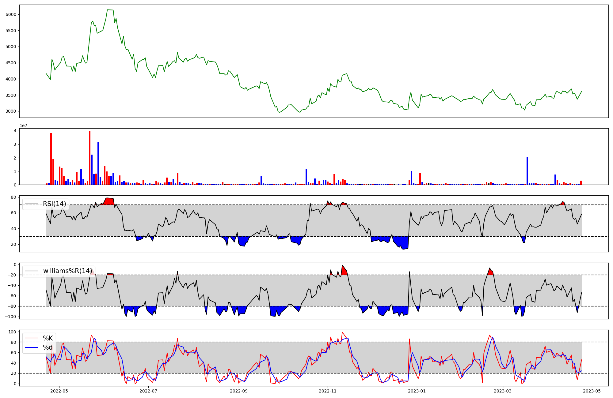 RSI | Williams %R | stochastic(%K) | |