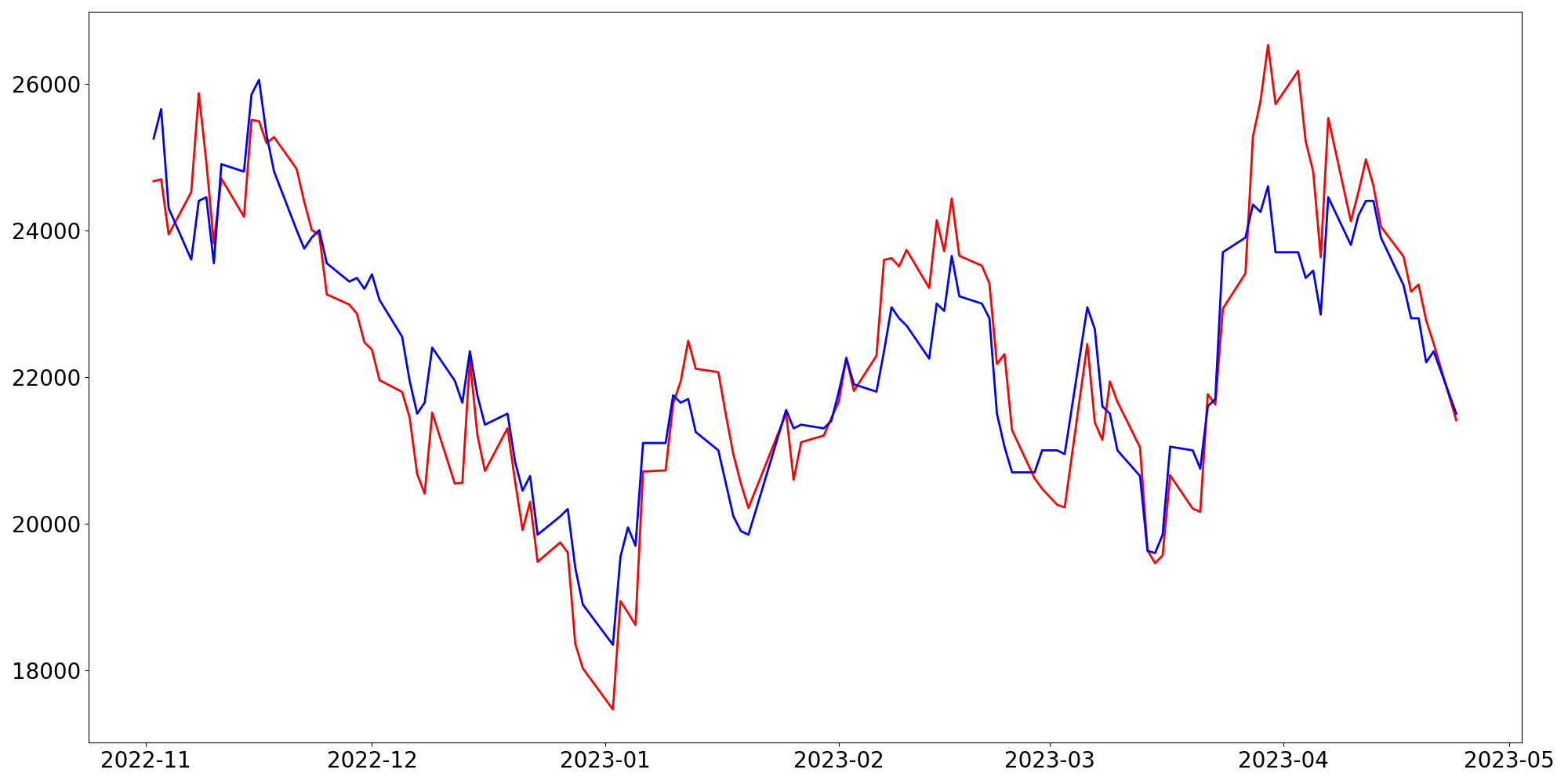 [ - : 실제값(종가) / - : 예측값(종가) ]