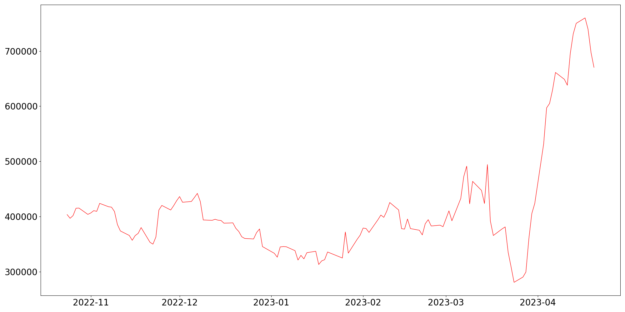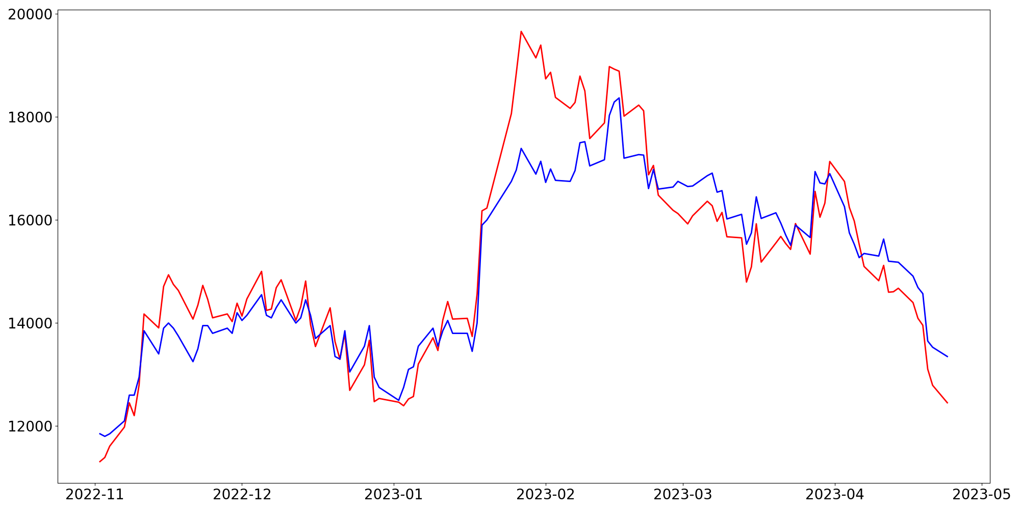 [ - : 실제값(종가) / - : 예측값(종가) ]
