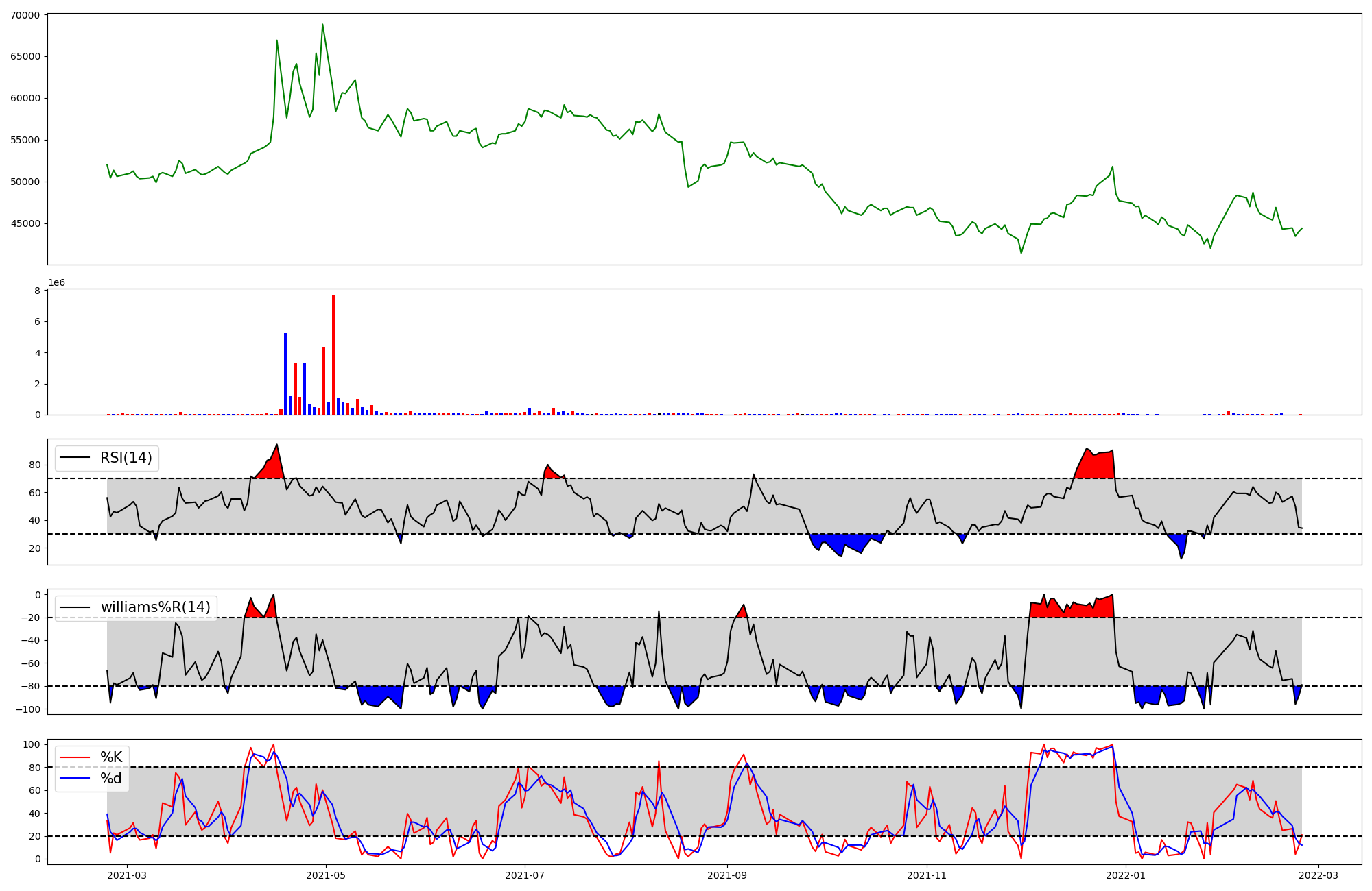 | RSI | Williams %R | stochastic(%K) | |