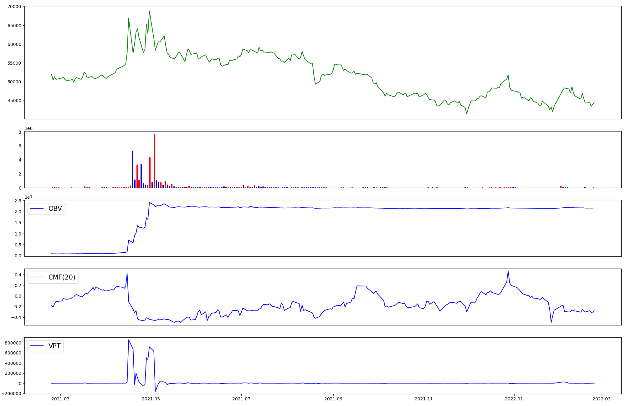 | OBV | CMF | VPT | |