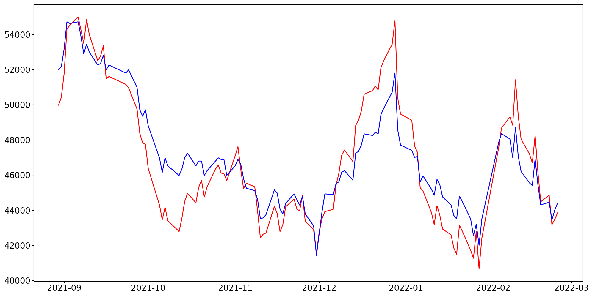 [ - : 실제값(종가) / - : 예측값(종가) ]