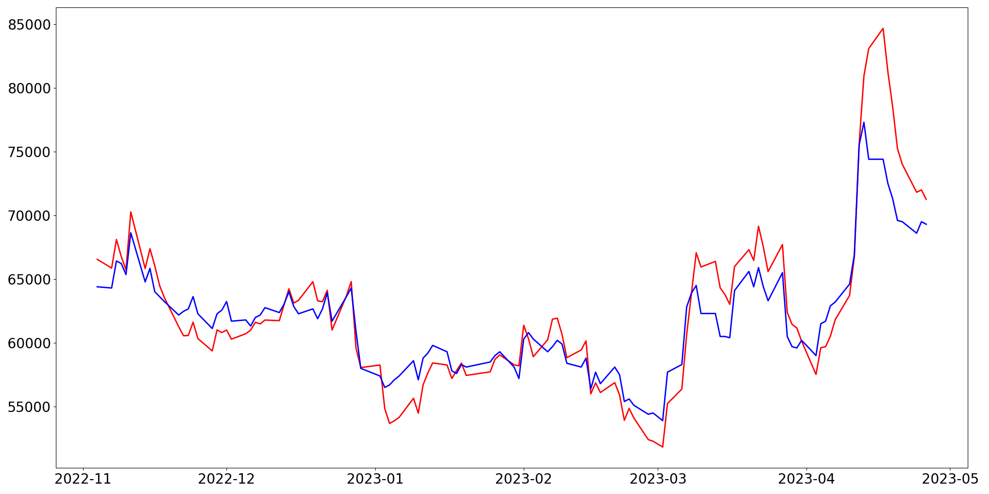 [ - : 실제값(종가) / - : 예측값(종가) ]