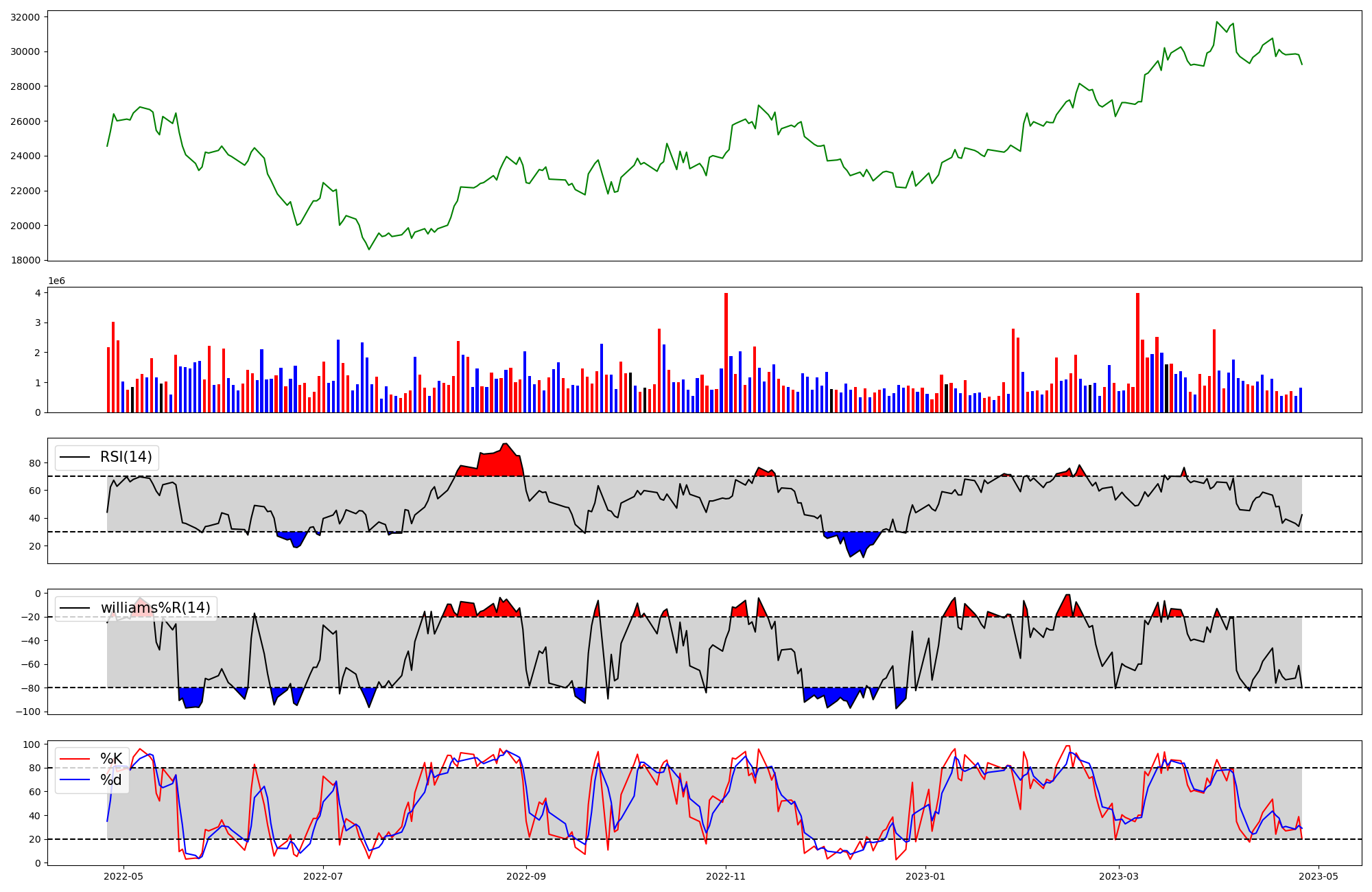 RSI | Williams %R | stochastic(%K) | |