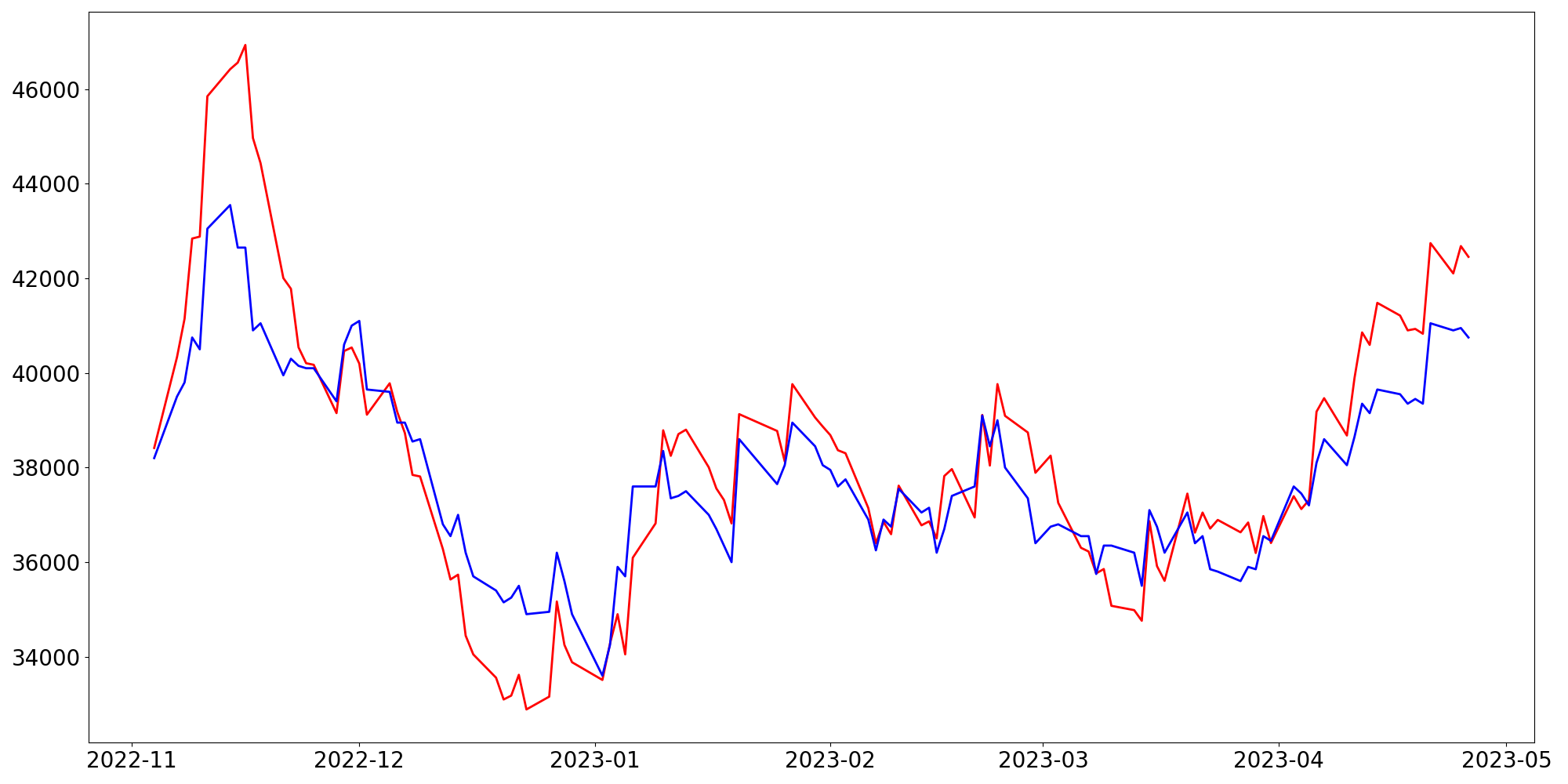 [ - : 실제값(종가) / - : 예측값(종가) ]