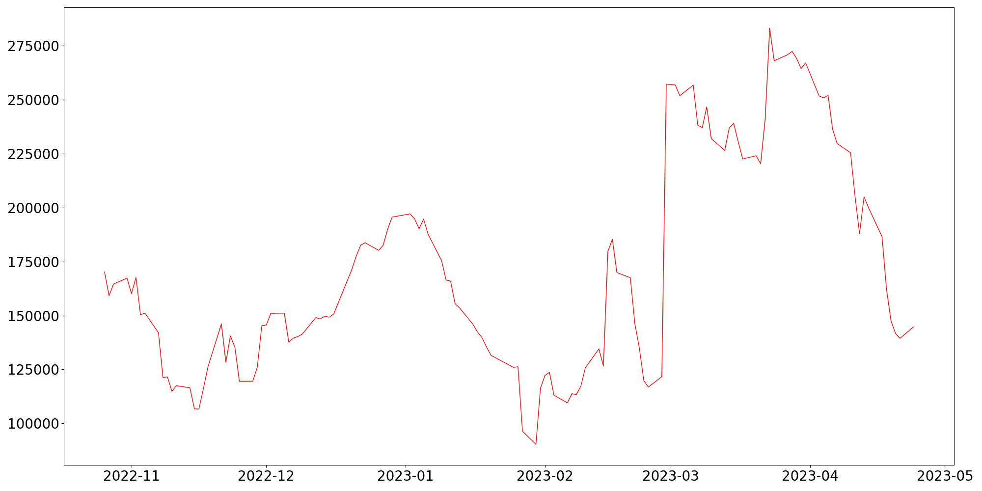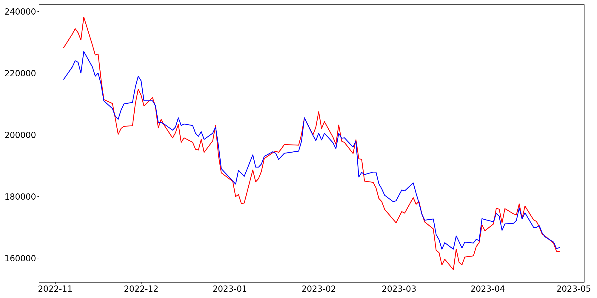 [ - : 실제값(종가) / - : 예측값(종가) ]