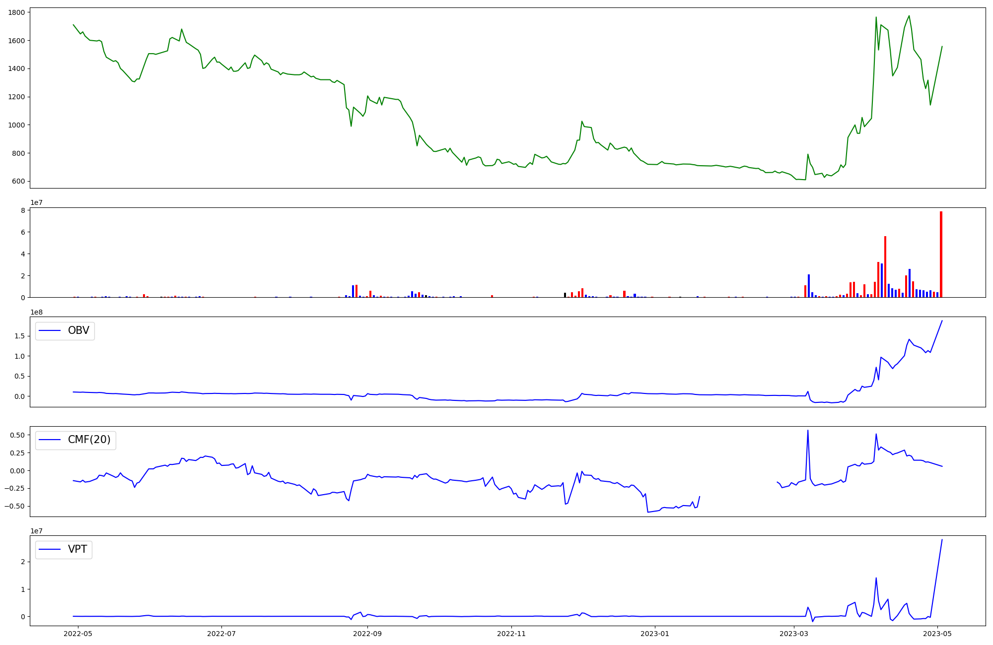 | OBV | CMF | VPT | |