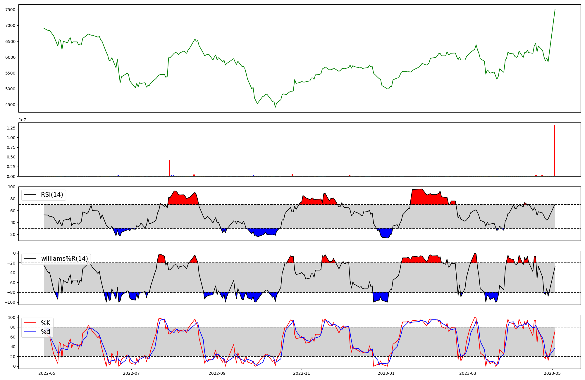 | RSI | Williams %R | stochastic(%K) | |