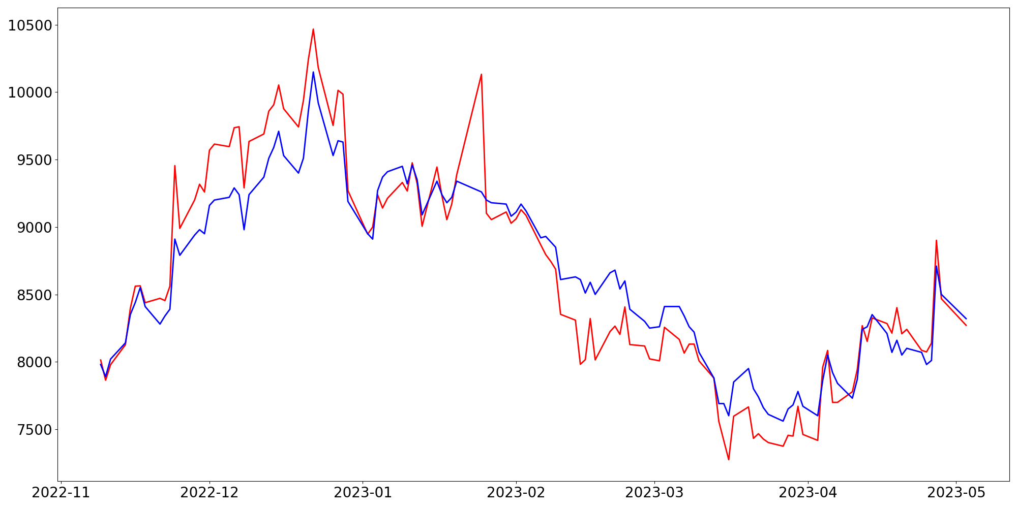 [ - : 실제값(종가) / - : 예측값(종가) ]