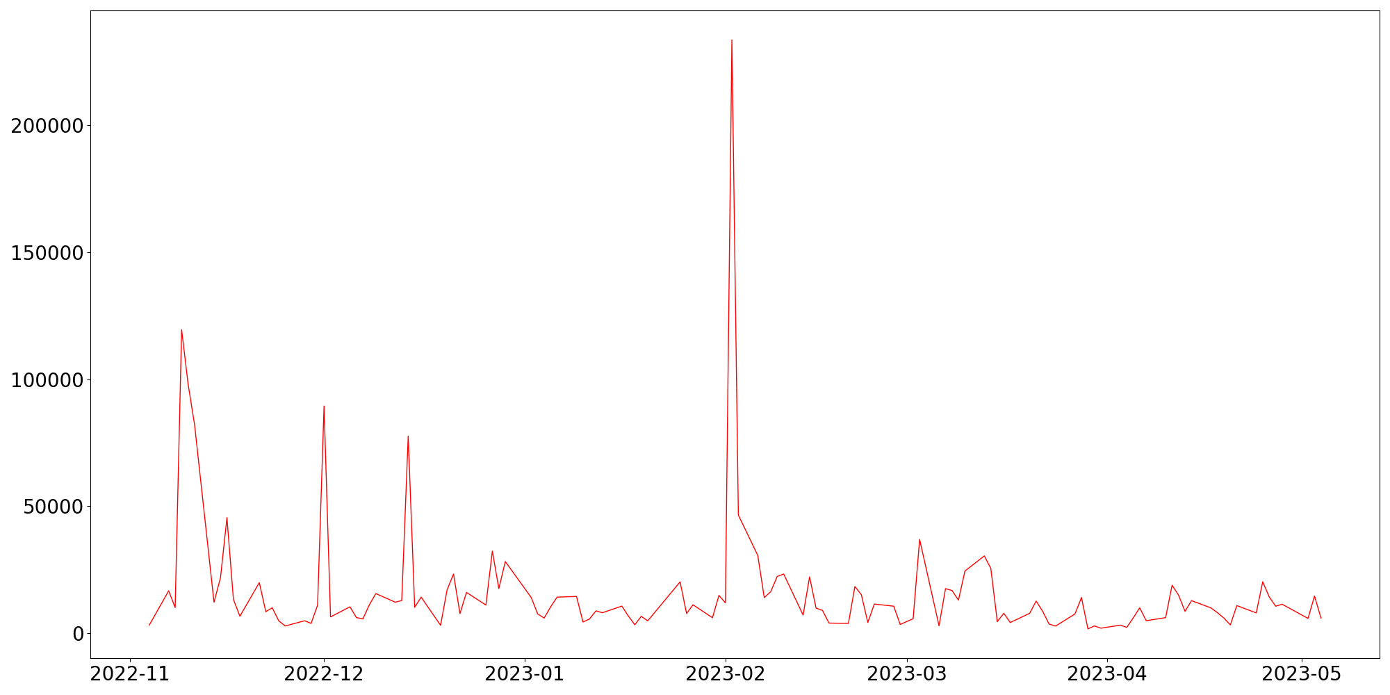 일별 공매도 거래량 추이를 그래프로 나타낸 것으로 공매도 거래량이 증가할 수록 단기적으로 가격 하락을 예측하는 시장참가자가 증거하는 것으로 판단해 볼 수 있습니다.